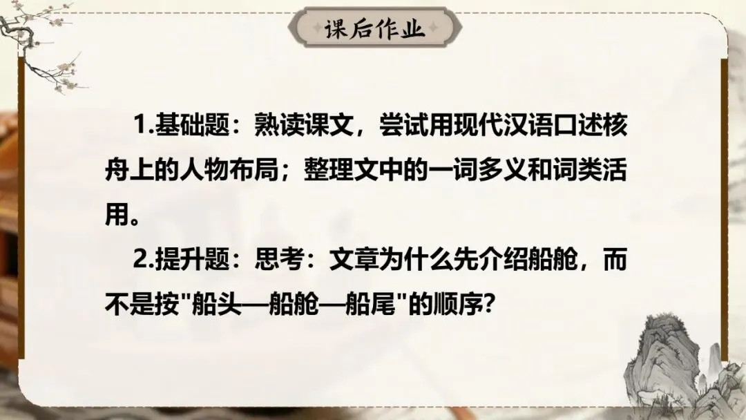1.文言积累可更系统: 本课一词多义较多(以、为、可、清、从、而),课堂时间有限,部分学生掌握不够扎实。下次可设计"一词多义归纳卡",让学生分组整理,课后巩固。