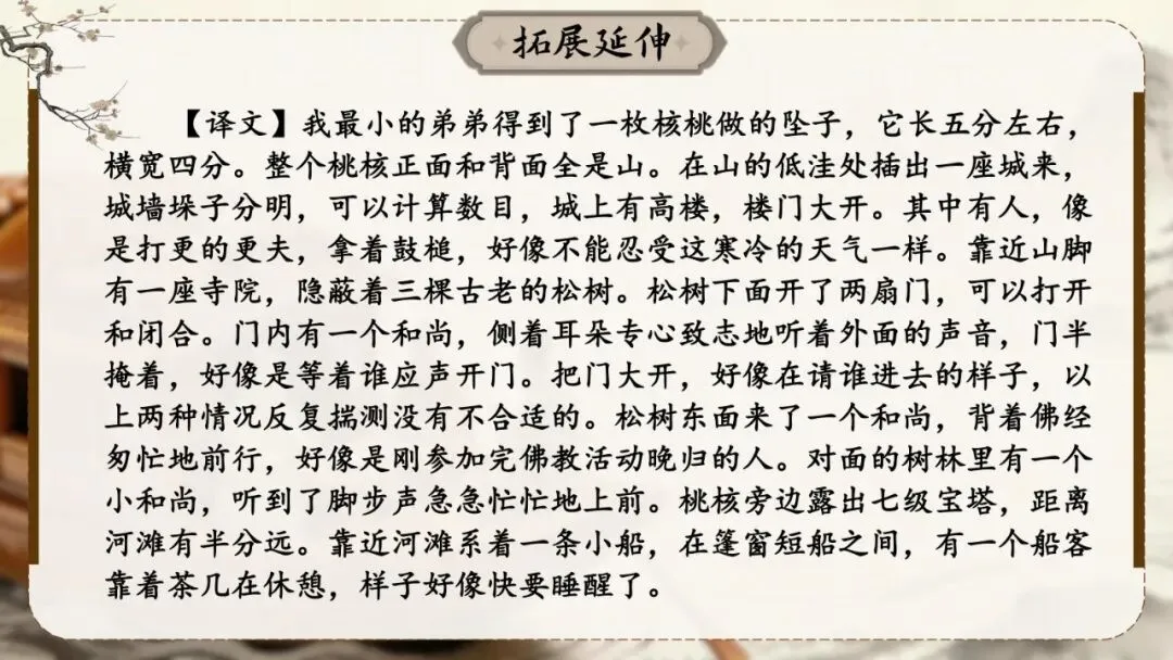 2.知人论世: 引入柳宗元被贬背景、《江雪》诗歌及《始得西山宴游记》等材料,帮助学生理解"乐中有忧,忧中有傲"的复杂心境,实现从"读懂文本"到"读懂作者"的跨越。