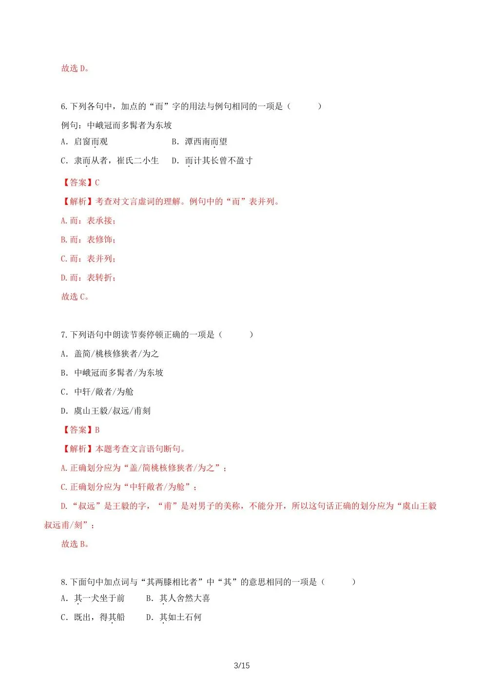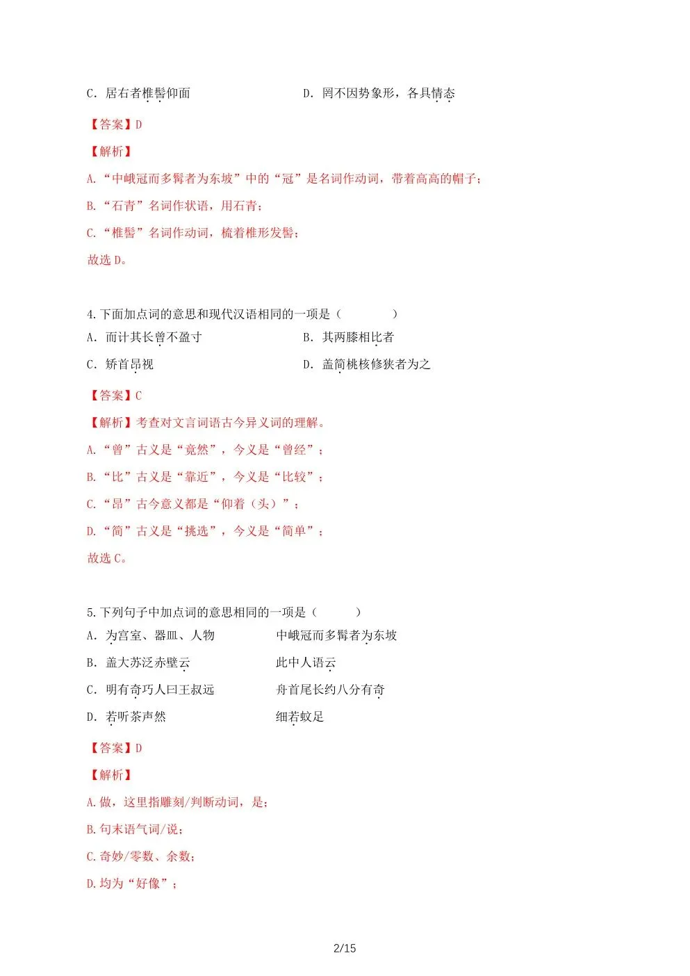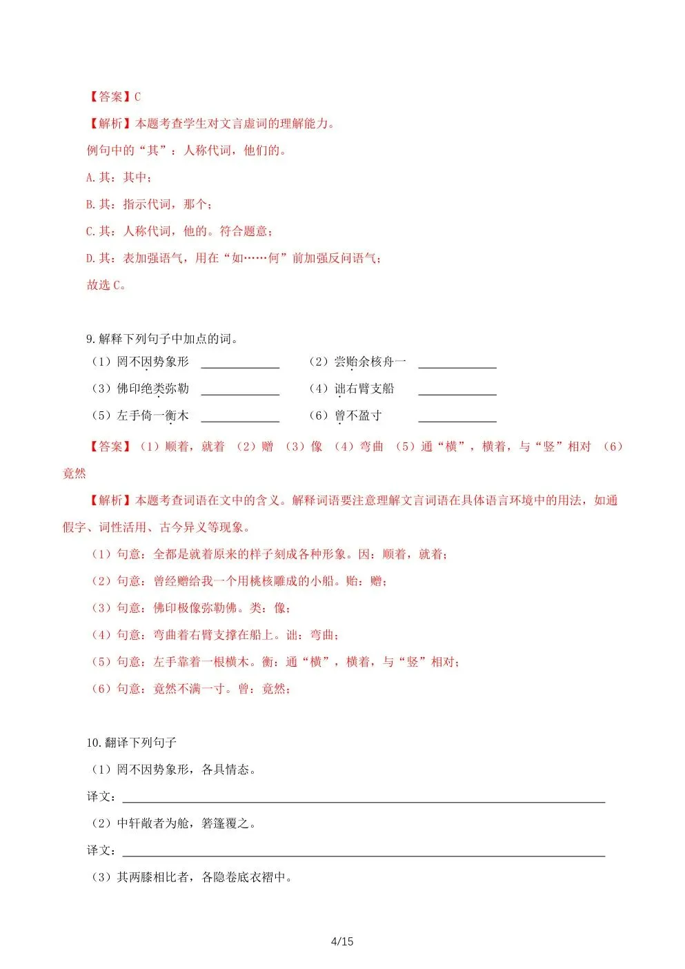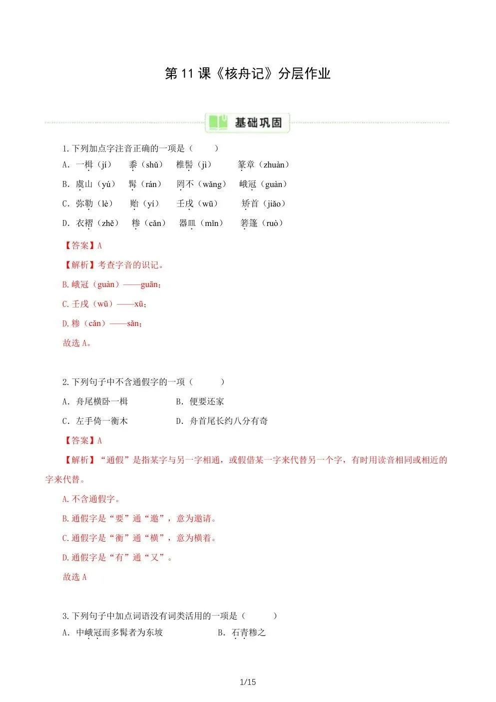 1.基础题:背诵课文,整理并积累重点文言字词。