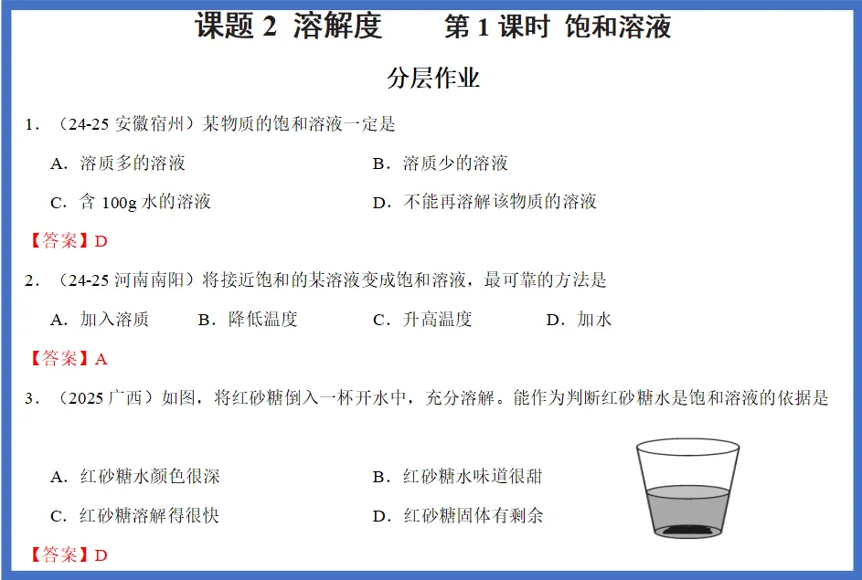 【备课素材】课题2 溶解度 (精品课件+高清视频素材+WORD版表格式教案+分层作业等).