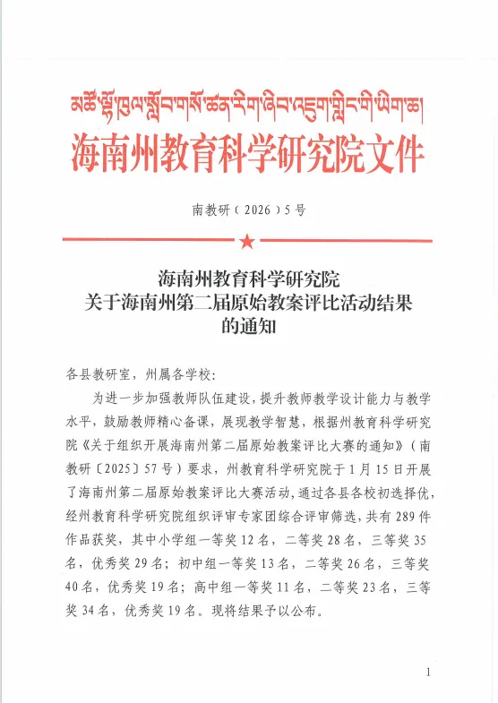 海南州原始教案评比优秀教案速览