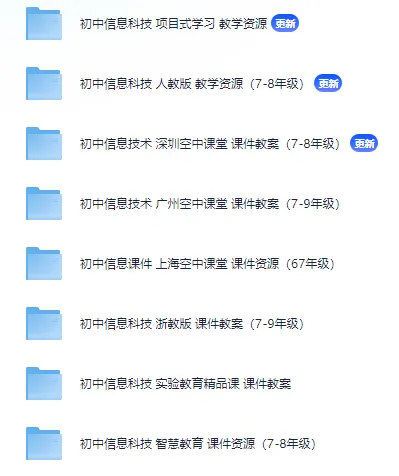 本文收集的资源是26春初中信息技术/信息科技课件教案教学设计免费下载链接|七八九年级上下册备课资料最新优质资源,内容丰富全面存放于网盘,网盘部分资源截图如下: |