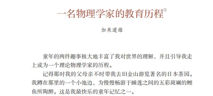 文章的题目是“一名物理学家的教育历程”,因此,叙述的顺序主要是历时性的。但是,作者开头就说“童年的两件趣事极大地丰富了我对世界的理解力,并且引导我走上成为一个理论物理学家的历程。”而“童年的两件趣事”作为文章的主要内容,又是共时性的叙述。这样的结构安排,使文章既脉络清楚,又重点突出。