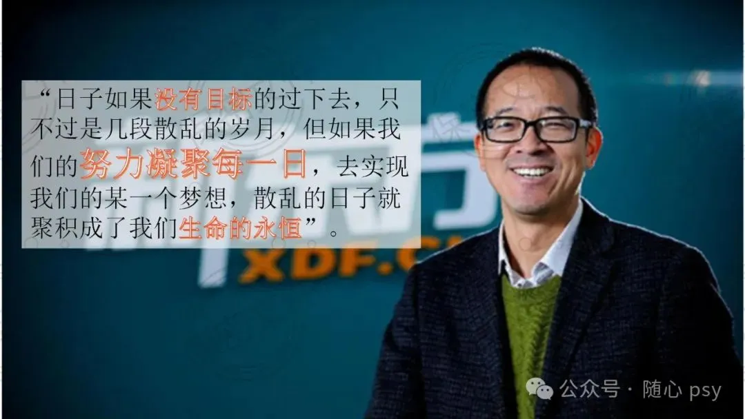 俞敏洪:“日子如果没有目标的过下去,只不过是几段散乱的岁月,但如果我们的努力凝聚每一日,去实现我们的某一个梦想,散乱的日子就聚积成了我们生命的永恒”。