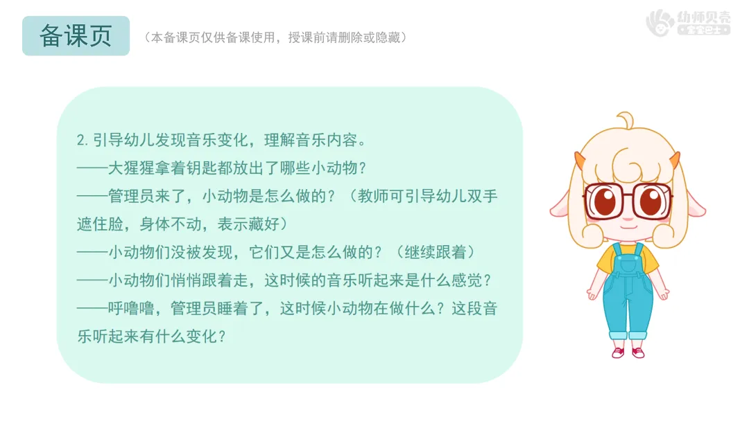 ——呼噜噜,管理员睡着了,这时候小动物在做什么?这段音乐听起来有什么变化?