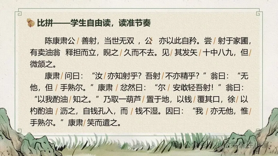 >「��公开课一等奖」七下《卖油翁》课件 | 一滴油里藏着的“熟能生巧”人生哲学!