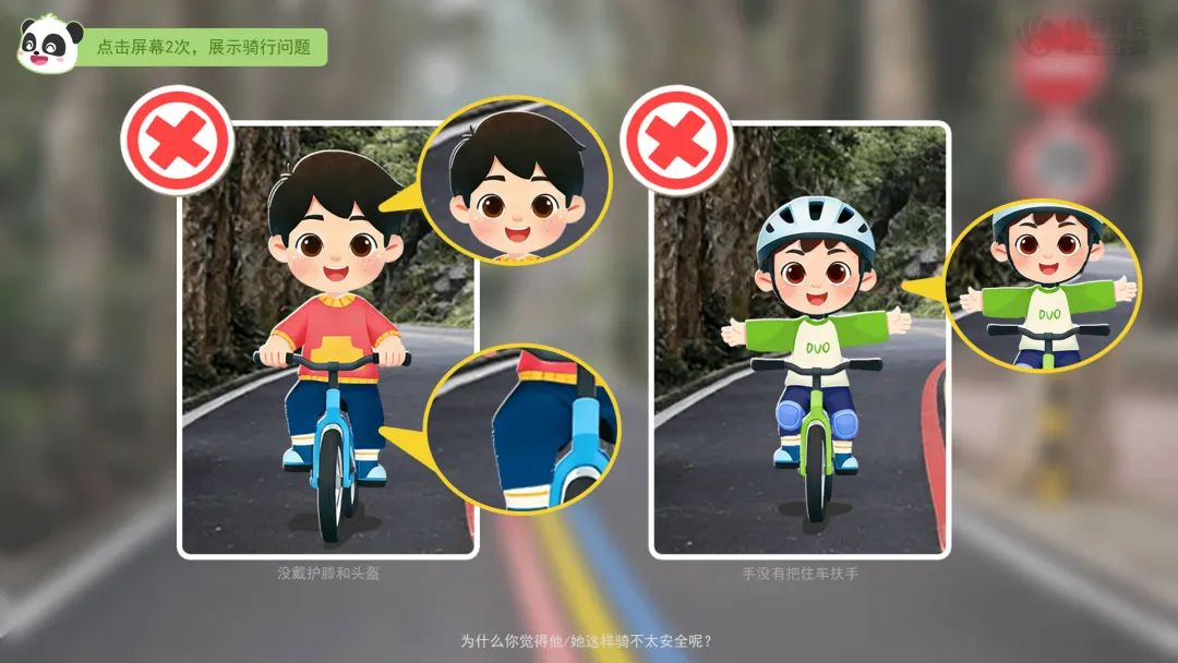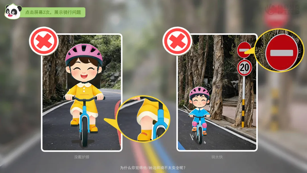 ——图中哪些小朋友的骑行方式是安全的?哪些是不太安全的?