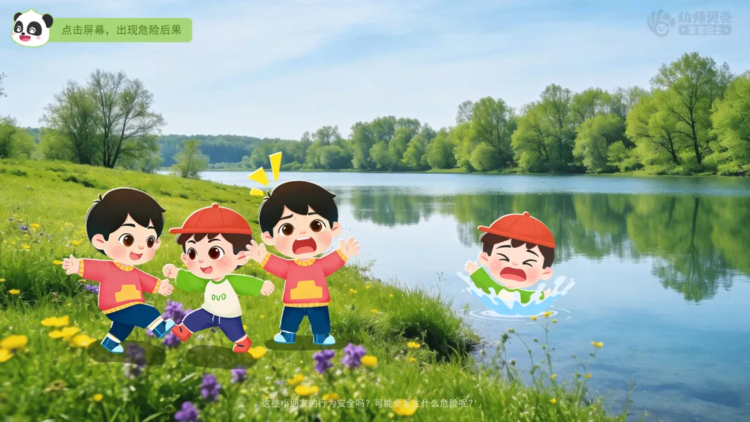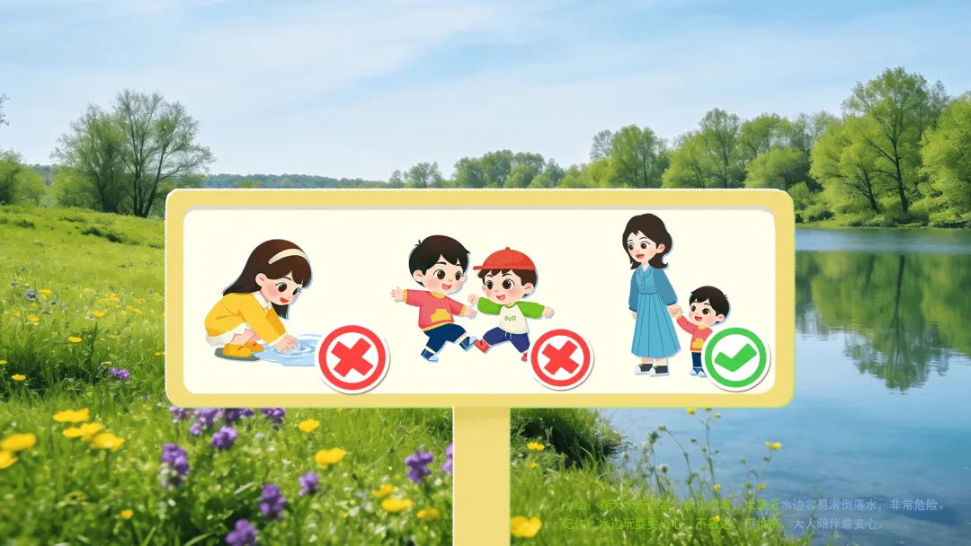 小结:春天水还很凉,岸边湿滑,太靠近水边容易滑倒落水,非常危险。记住:水边玩耍要小心,不靠近,不推挤,大人陪伴最安心。