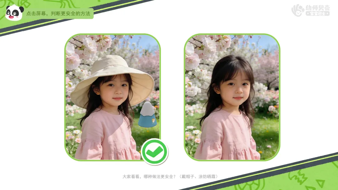 ——大家看看,哪种做法更安全?(戴帽子、涂防晒霜)