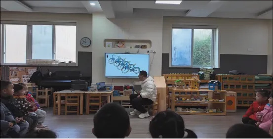 师:这是什么呀?脚踏车?单车?接下来我要唱一首歌,你们听听我把它叫成什么车?随乐1。