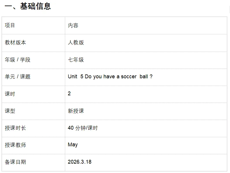 人教版英语七上Unit 5 教案