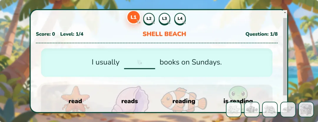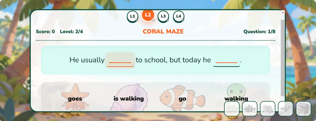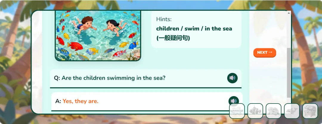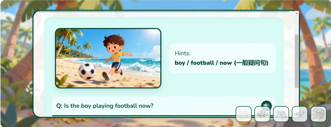 思前想后,赶紧手搓新课件来辅助,这期我想做一个海岛风的时态游戏!