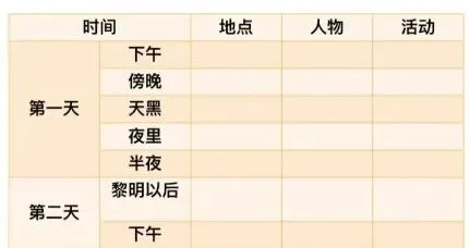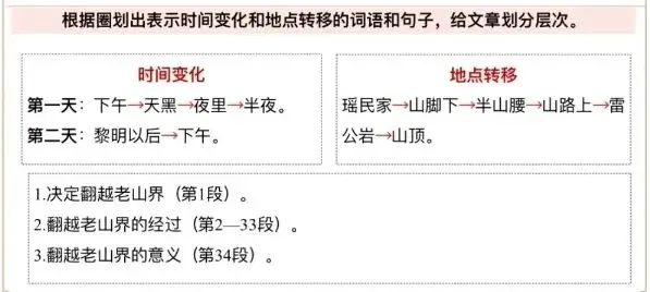 根据圈划出表示时间变化和地点转移的词语和句子,给文章划分层次。