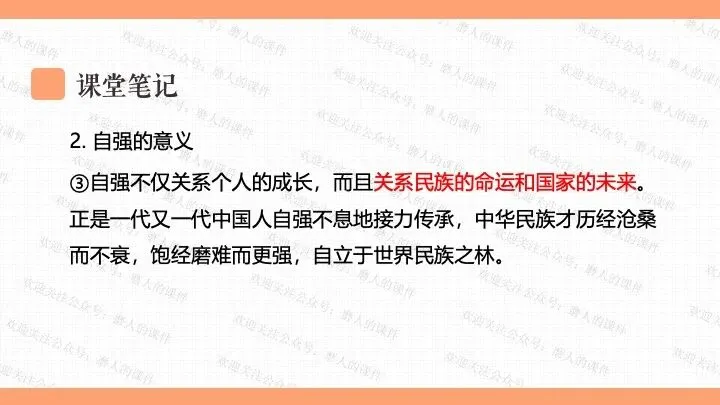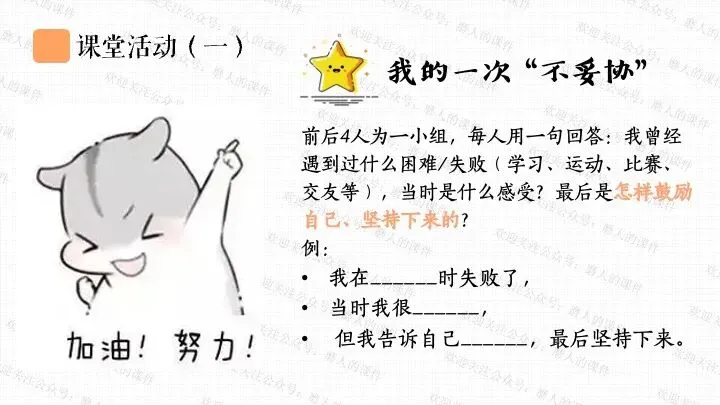 从梳理知识框架、构思上课思路,到找资料、打磨、排版的每一个环节,老师们只要做过课件,都知道是费时费力的,所以知识版权需要大家的尊重,谢绝拼课件,私自传播是侵权行为,请做一名有德守法的道德与法治教师。