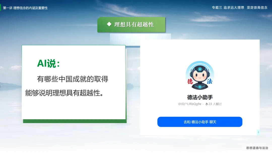 2026春 “德法”教学课件+逐字稿|专题3 追求远大理想 坚定崇高信念 第1讲 理想信念的内涵及重要性(出发的方向、AI赋能)