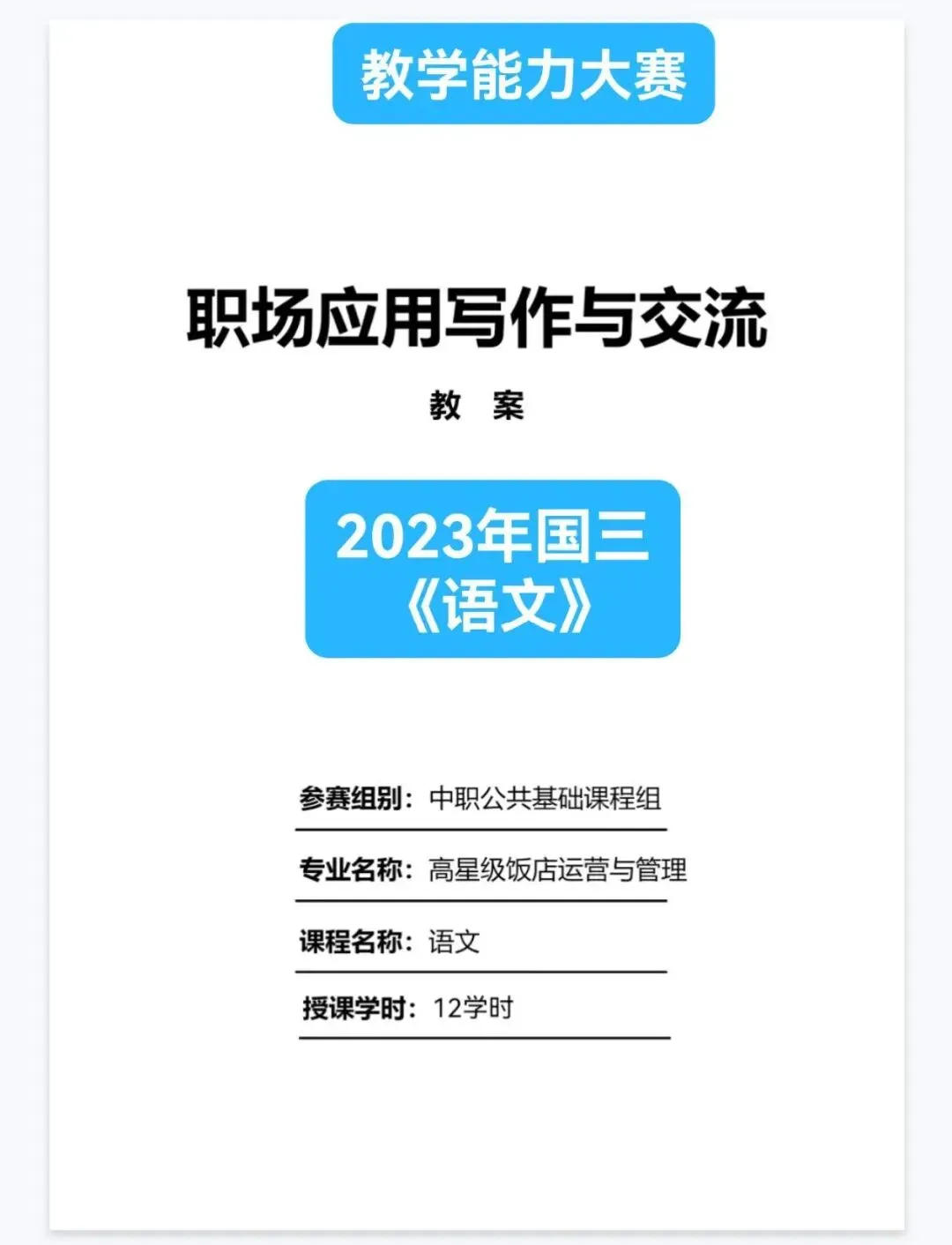语文大类,2023年全国职业院校技能大赛教学能力比赛国赛三等奖作品赏析,教学实施报告,教案PDF电子资料