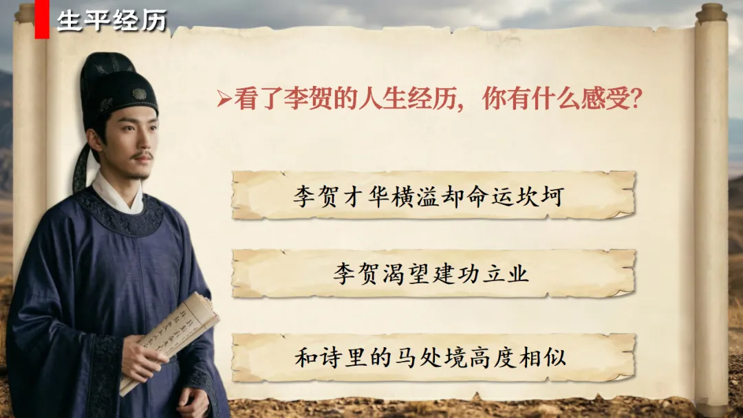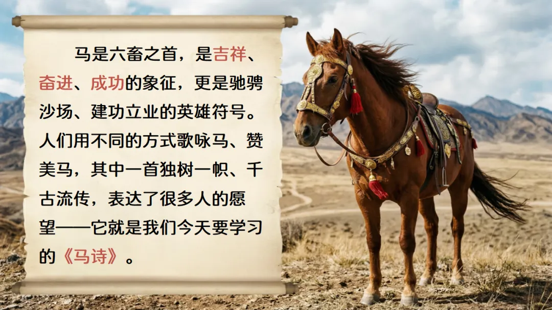 >六下古诗三首《马诗》AI赋能课件 | 品读千古咏马名篇,体悟李贺的壮志豪情(课件+AI视频+教案)