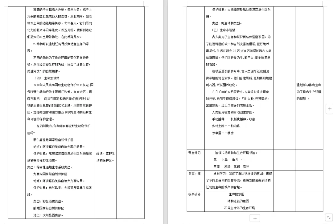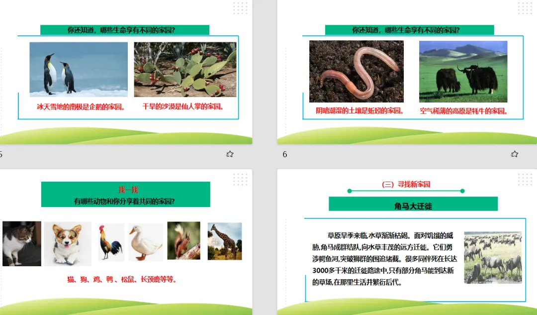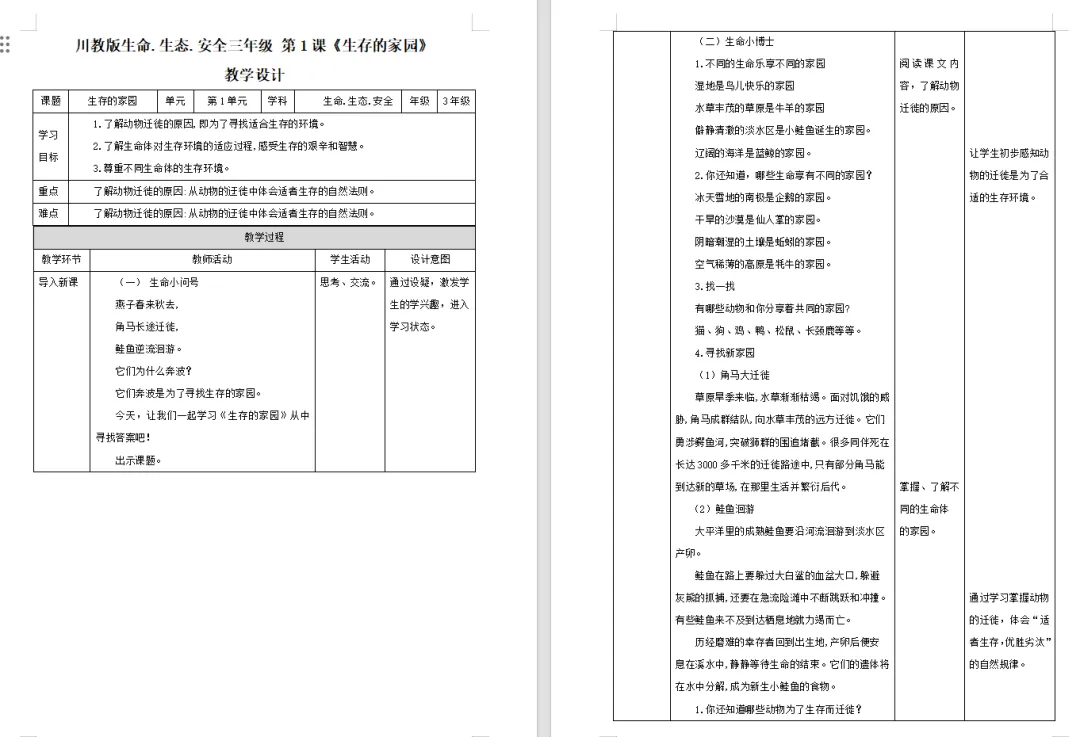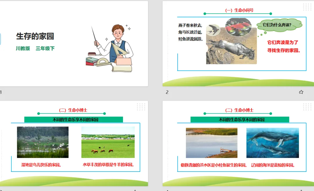 【生命·生态·安全教案课件】人教川教版三年级下册表格配套课件第1课《生存的家园》