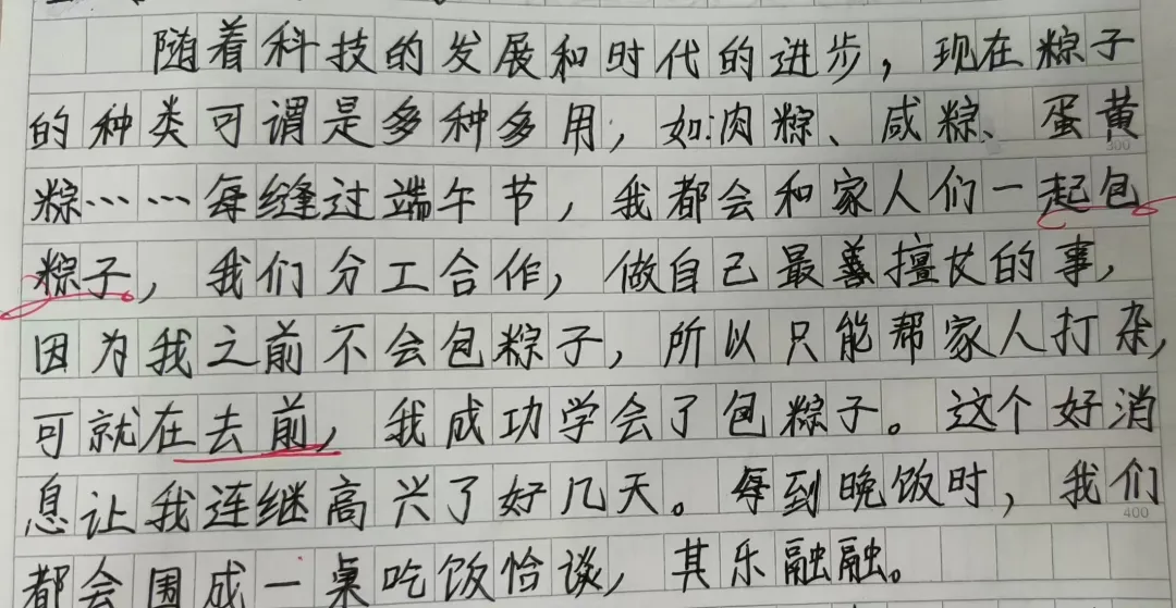 2、写包粽子写得不够具体,可以加入动作、心情的描写,还可以正侧面结合。