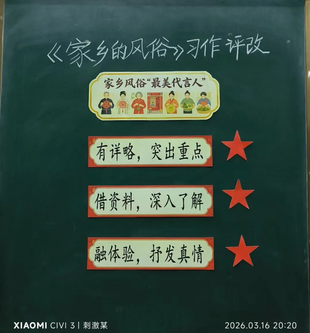 本次习作点评课以“家乡风俗最美代言人”为情境,基于学生已有习作基础展开,通过明确评价标准、学生互评、片段修改等环节,引导学生关注详略与细节描写,落实“重修改、重发表”的教学理念。