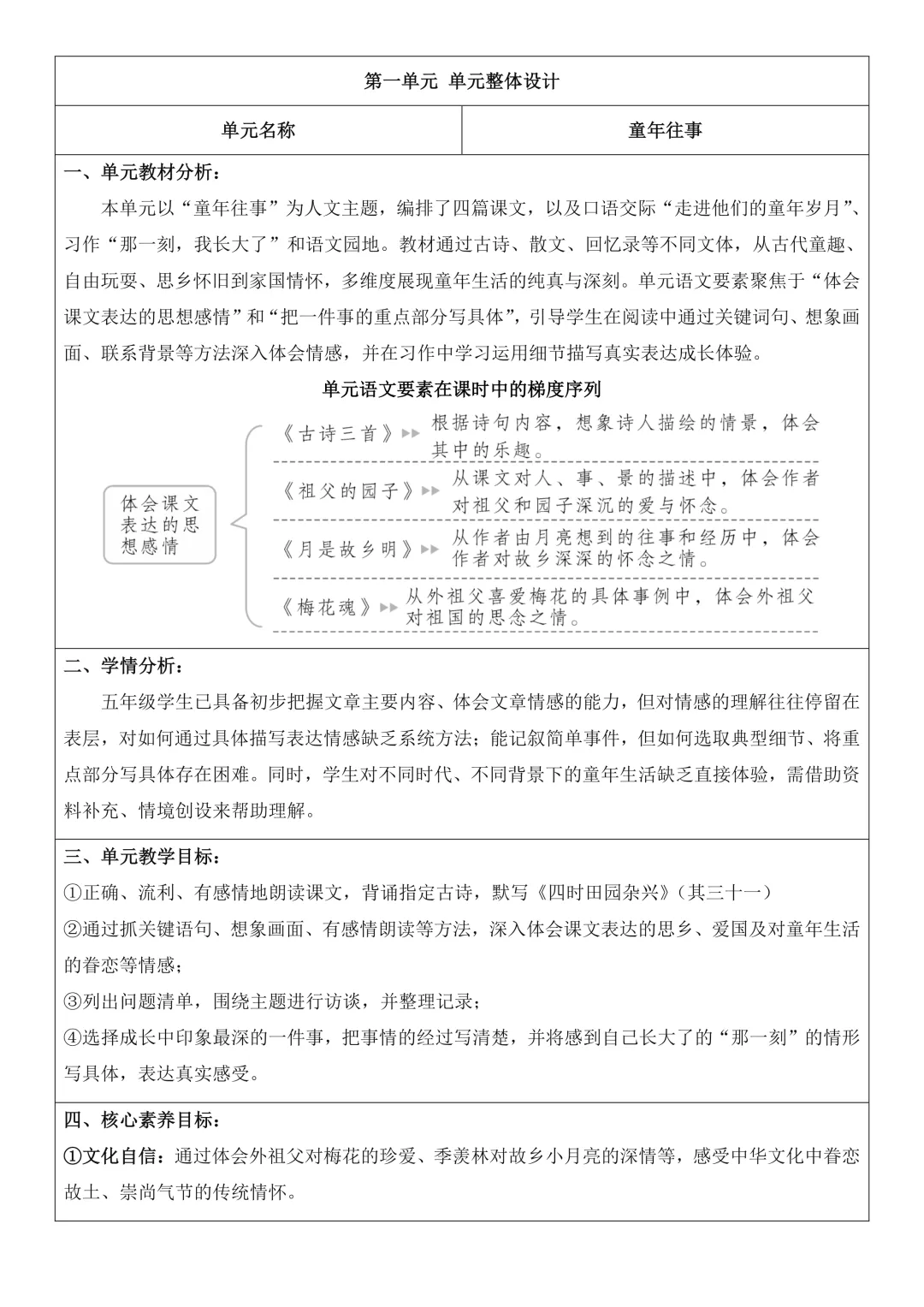 >五年级下册语文全册核心素养教案表格版,有反思和无反思两个版本都包含