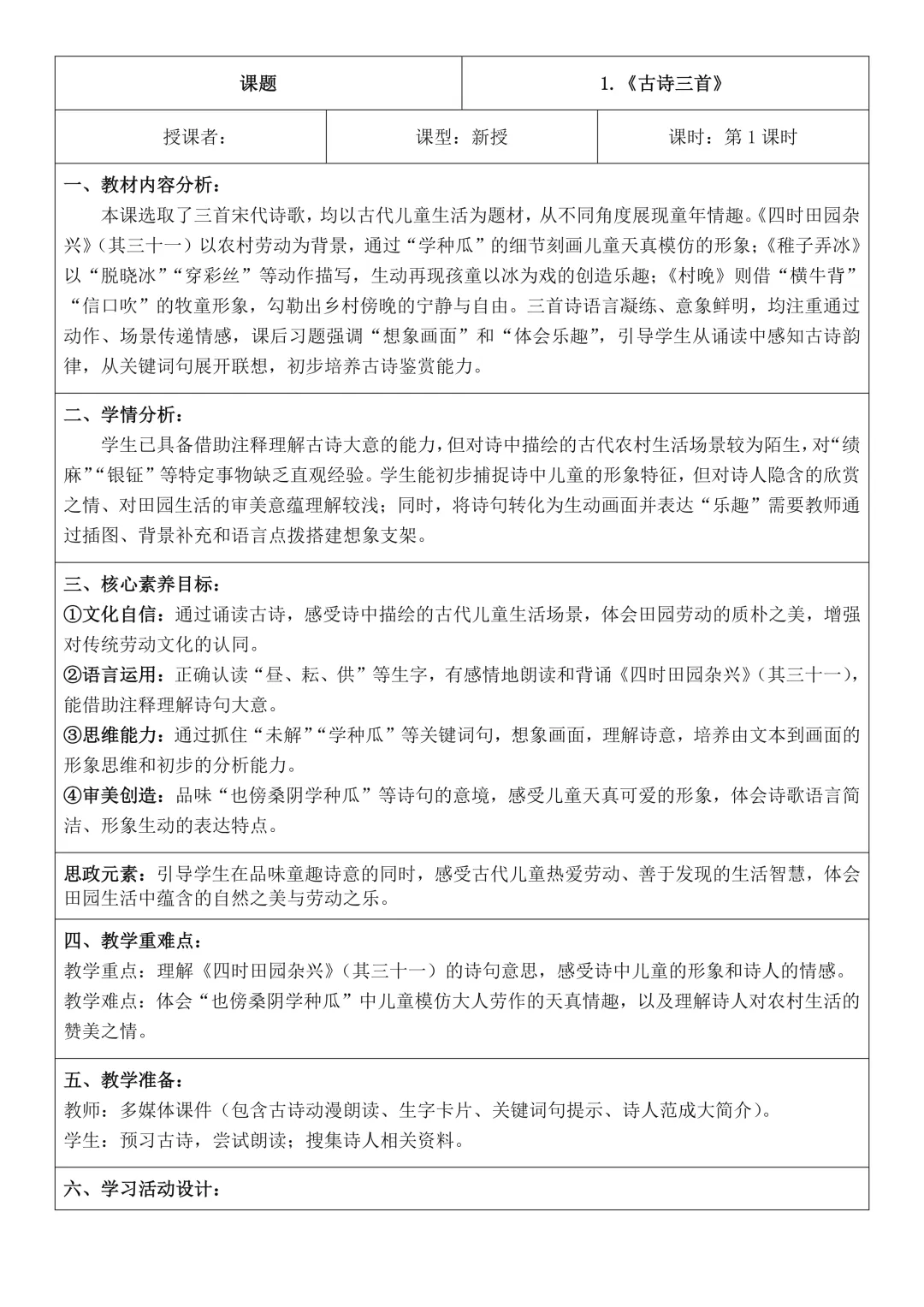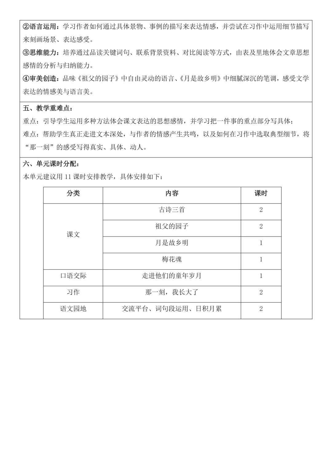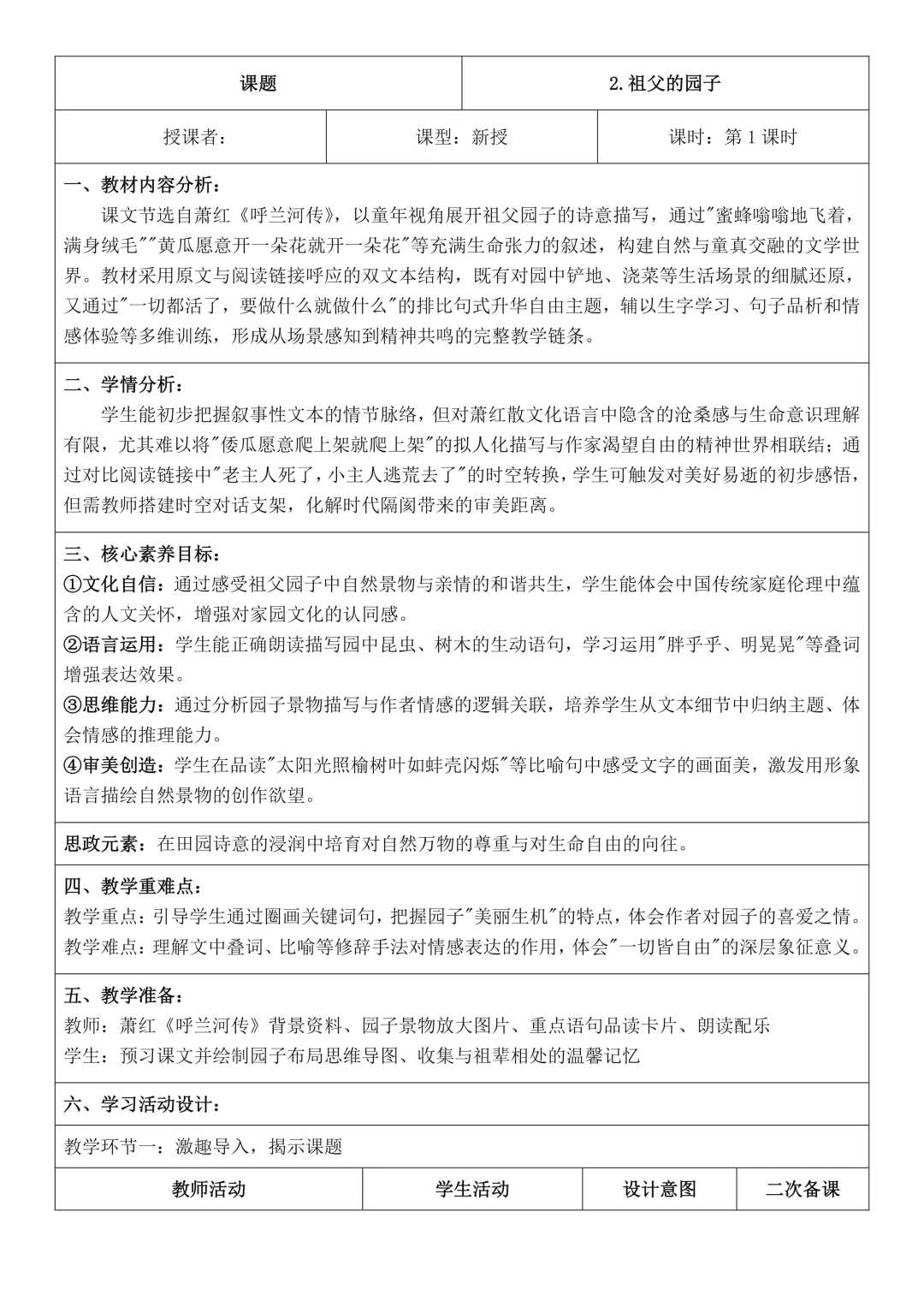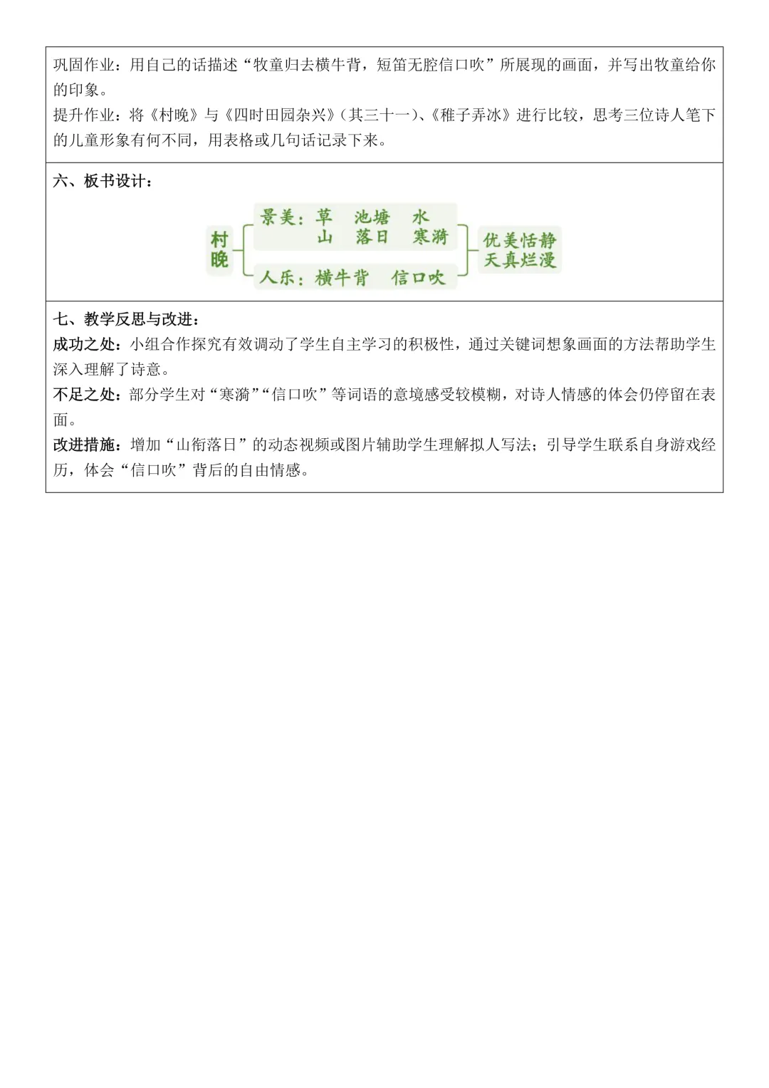 六年级下册语文全册核心素养教案表格版,有反思和无反思两个版本都包含
