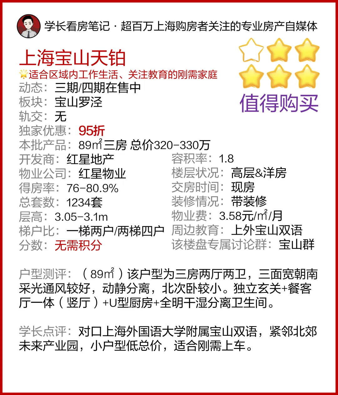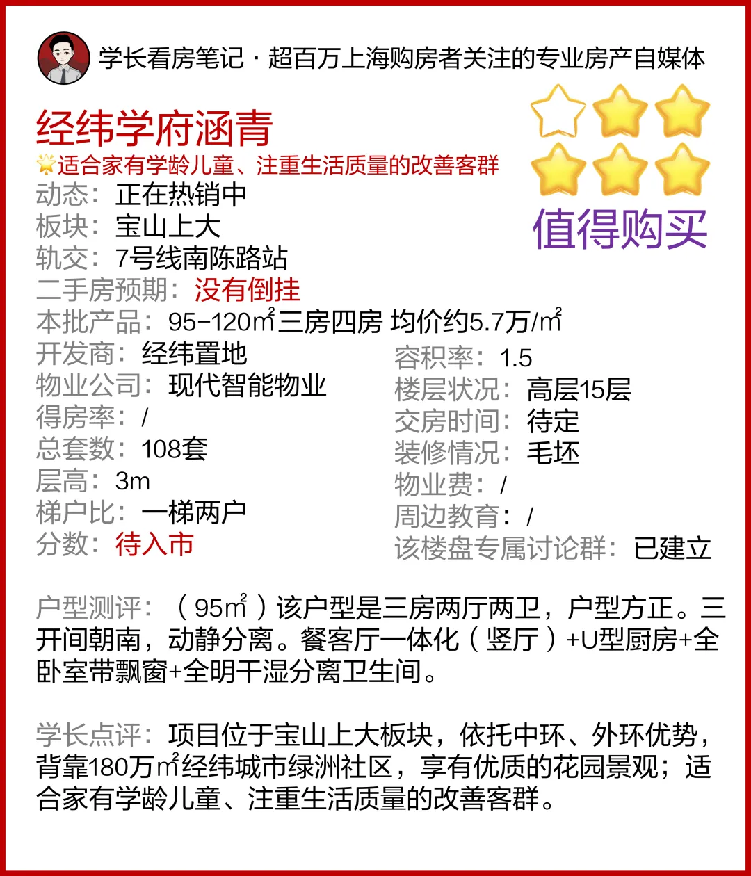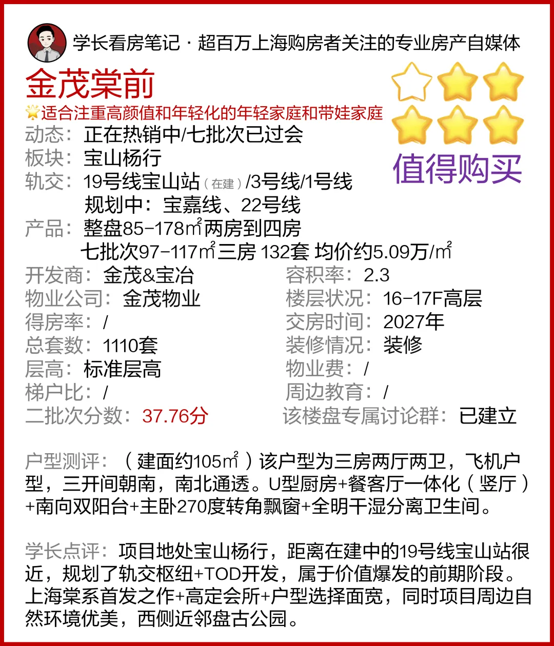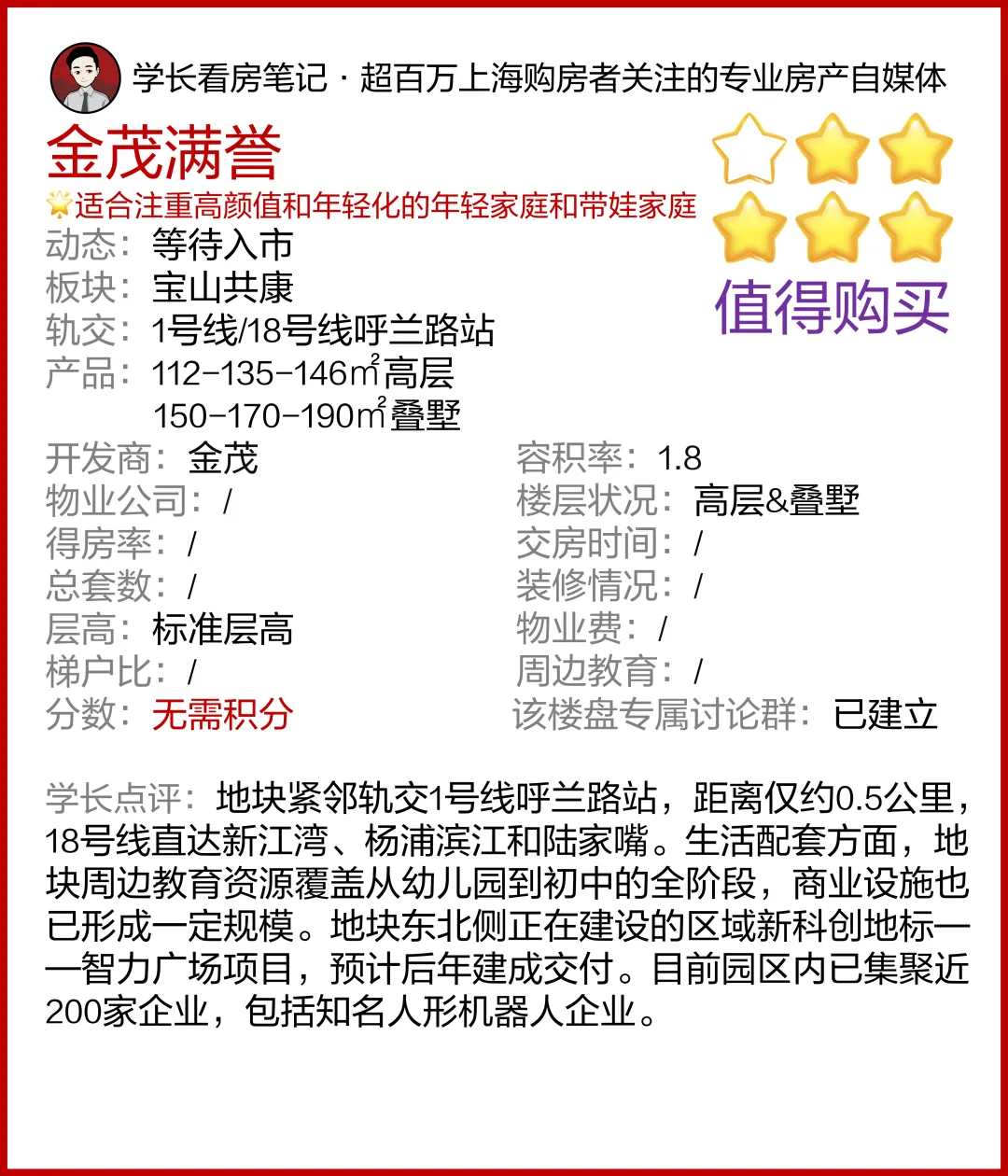 最新消息,样板间视频发布!宝山首个低密浮岛洋房项目「建发云湖玥」等待入市!建面约97-128㎡洋房!最新消息,紧邻18号线通南路站仅约50米!宝山淞南「江湾金茂府」五批次正在热销中!最新消息,宝山淞南「招商序」正在热销中!地铁上盖的这个中环项目再现神级户型,93%实得率,700万即可上车!最新消息:火热热销中!商业+现房+教育全面兑现!北上海滨江孤品「上海长滩」收官之作来了!用现房改写滨江生活门槛!最新消息,宝山淞宝「吴淞道1號」前期在售,二批次待加推!推出建面约100-145㎡三房四房!最新消息:宝山月浦「宝华北岸郡庭」正在热销中!推出建面约89.24㎡3房,总价约197万起!最新消息:咫尺静安!中环爆款出圈之作「大华·公园柏翠」正在热销中!推出建面约101-144㎡三房四房!最新消息,最新户型图发布!宝山再添品质标杆!「金茂满誉」等待入市!预计推出112-146㎡高层&150-190㎡叠墅!最新消息,宝山高境「江湾鸿玺」在售中!推出建面200㎡大平层,总价约1420万起!本课件为人工统计,如有错误,欢迎留言指正,当然,如果大家对课件的内容提升,有任何建议,或者,需要加入「宝山买房讨论群」,可以扫描下方二维码,诚挚感谢!