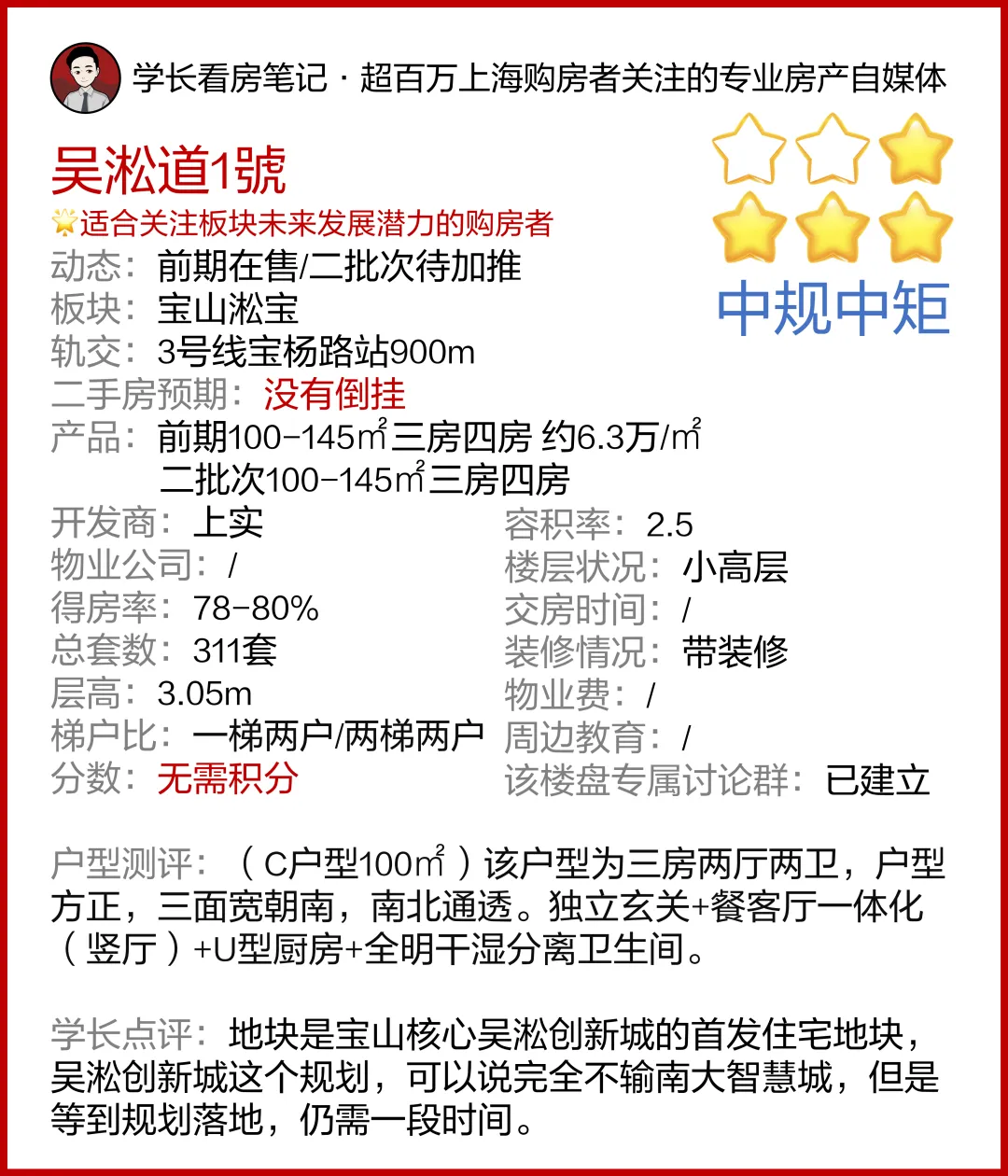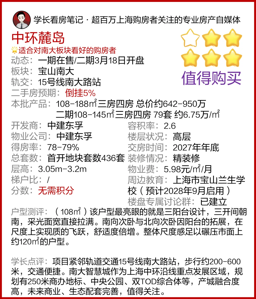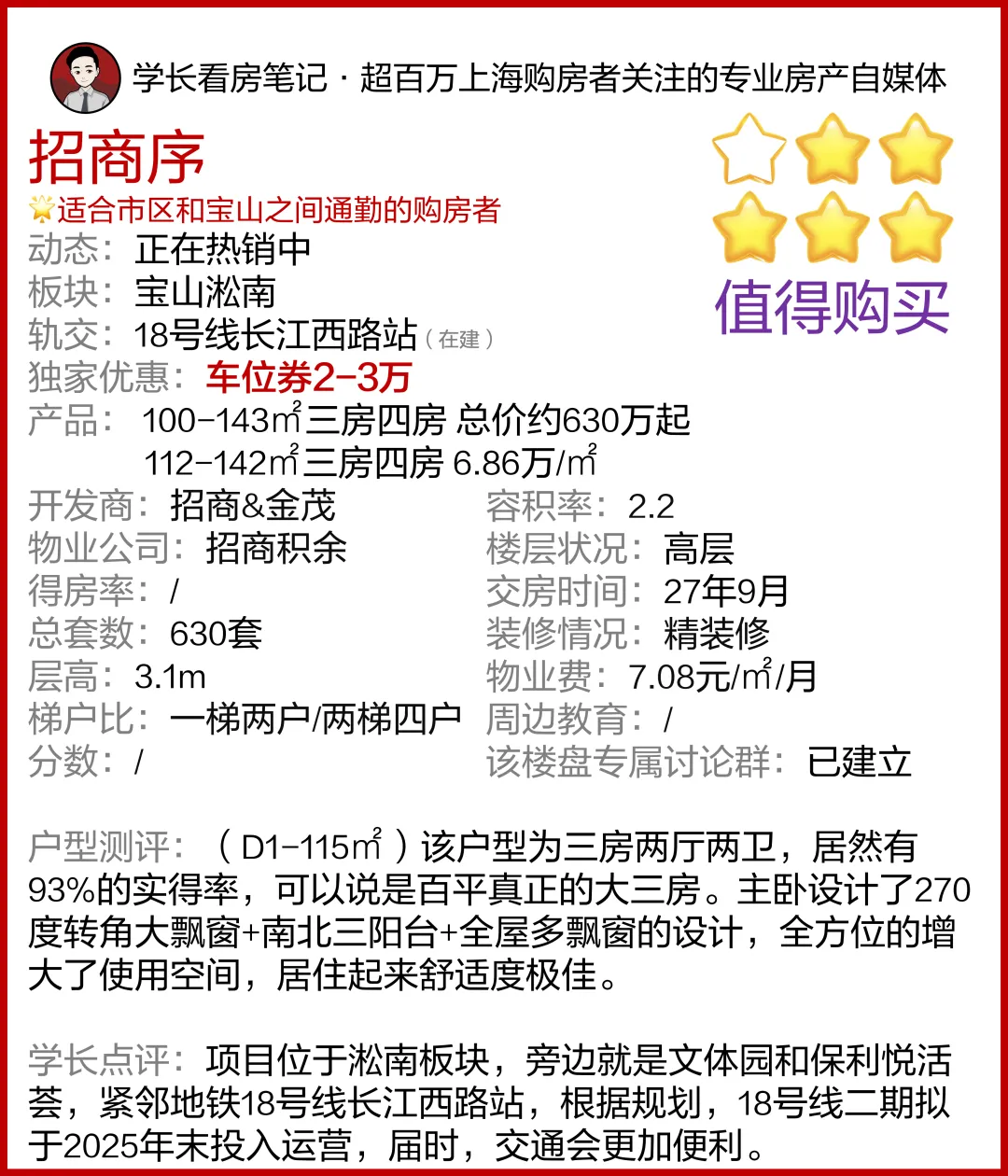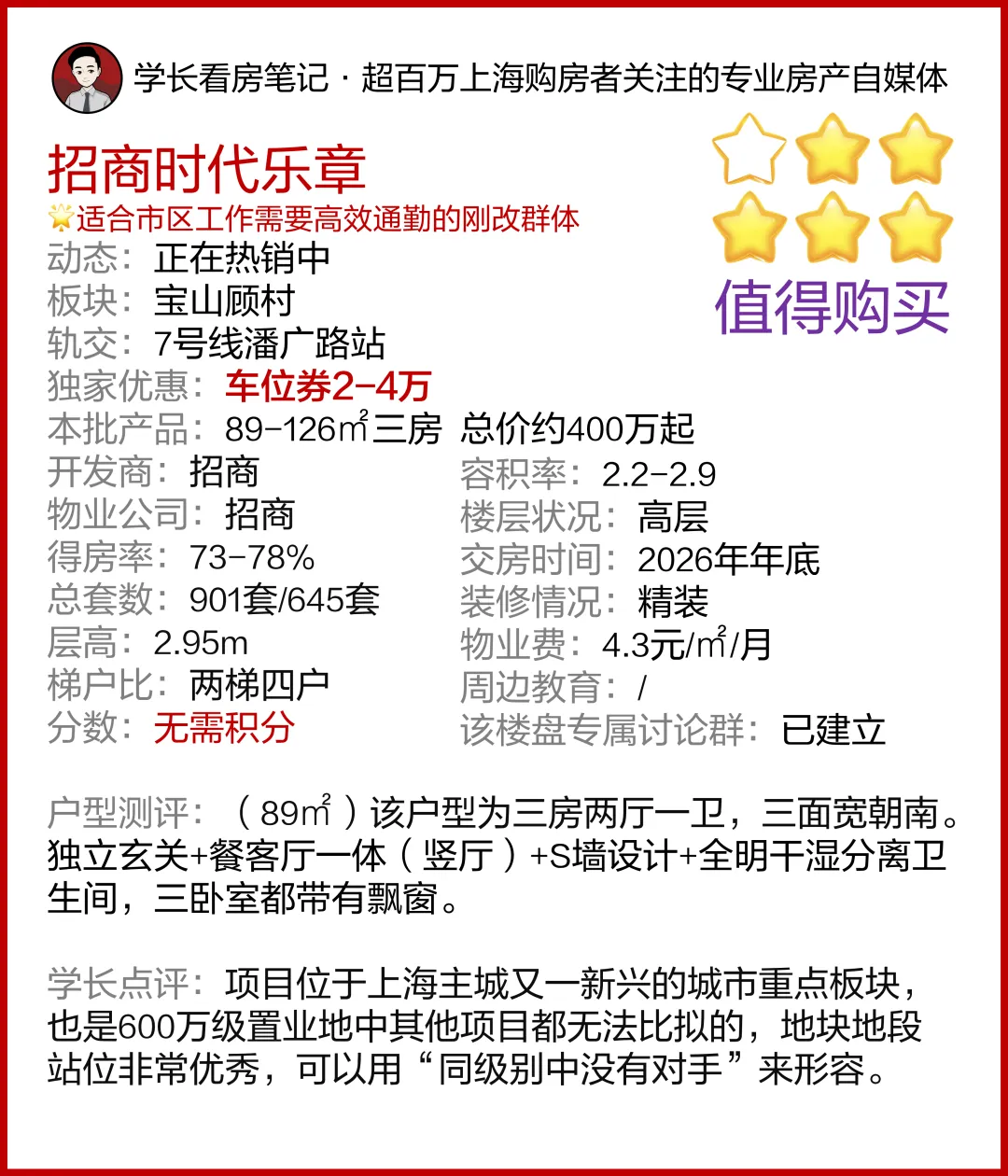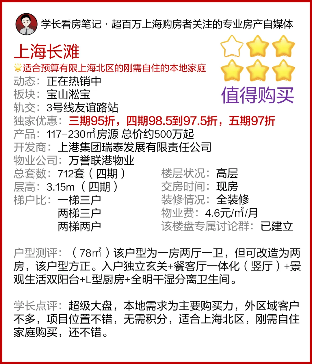 最新消息,样板间视频发布!宝山首个低密浮岛洋房项目「建发云湖玥」等待入市!建面约97-128㎡洋房!最新消息,紧邻18号线通南路站仅约50米!宝山淞南「江湾金茂府」五批次正在热销中!最新消息,宝山淞南「招商序」正在热销中!地铁上盖的这个中环项目再现神级户型,93%实得率,700万即可上车!最新消息:火热热销中!商业+现房+教育全面兑现!北上海滨江孤品「上海长滩」收官之作来了!用现房改写滨江生活门槛!最新消息,宝山淞宝「吴淞道1號」前期在售,二批次待加推!推出建面约100-145㎡三房四房!最新消息:宝山月浦「宝华北岸郡庭」正在热销中!推出建面约89.24㎡3房,总价约197万起!最新消息:咫尺静安!中环爆款出圈之作「大华·公园柏翠」正在热销中!推出建面约101-144㎡三房四房!最新消息,最新户型图发布!宝山再添品质标杆!「金茂满誉」等待入市!预计推出112-146㎡高层&150-190㎡叠墅!最新消息,宝山高境「江湾鸿玺」在售中!推出建面200㎡大平层,总价约1420万起!本课件为人工统计,如有错误,欢迎留言指正,当然,如果大家对课件的内容提升,有任何建议,或者,需要加入「宝山买房讨论群」,可以扫描下方二维码,诚挚感谢!