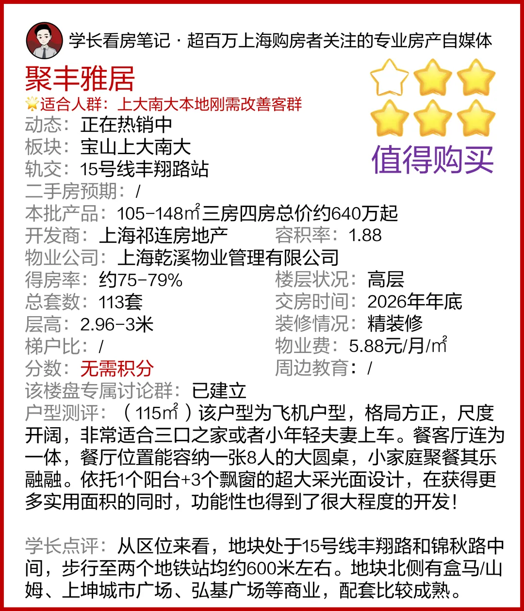 最新消息:中环旁限量版准现房横空出世!双TOD旁+15号线约600米+山姆旁,「聚丰雅居」预定下半年楼市C位,仅113席!