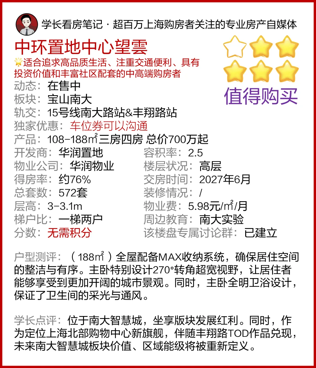 最新消息:宝山南大「中環置地中心·望雲TOD」在售中!在售建面约108-188㎡房源!最新消息,正在热销中!北中环史诗级作品压轴登场——「中环铂樾」,彻底颠覆城市封面!内附一房一价表!最新消息:中环旁限量版PARK-TOD「中环麓岛」来了,内外双公园+15号线约200米+三阳台神户型!认筹期间有惊喜!