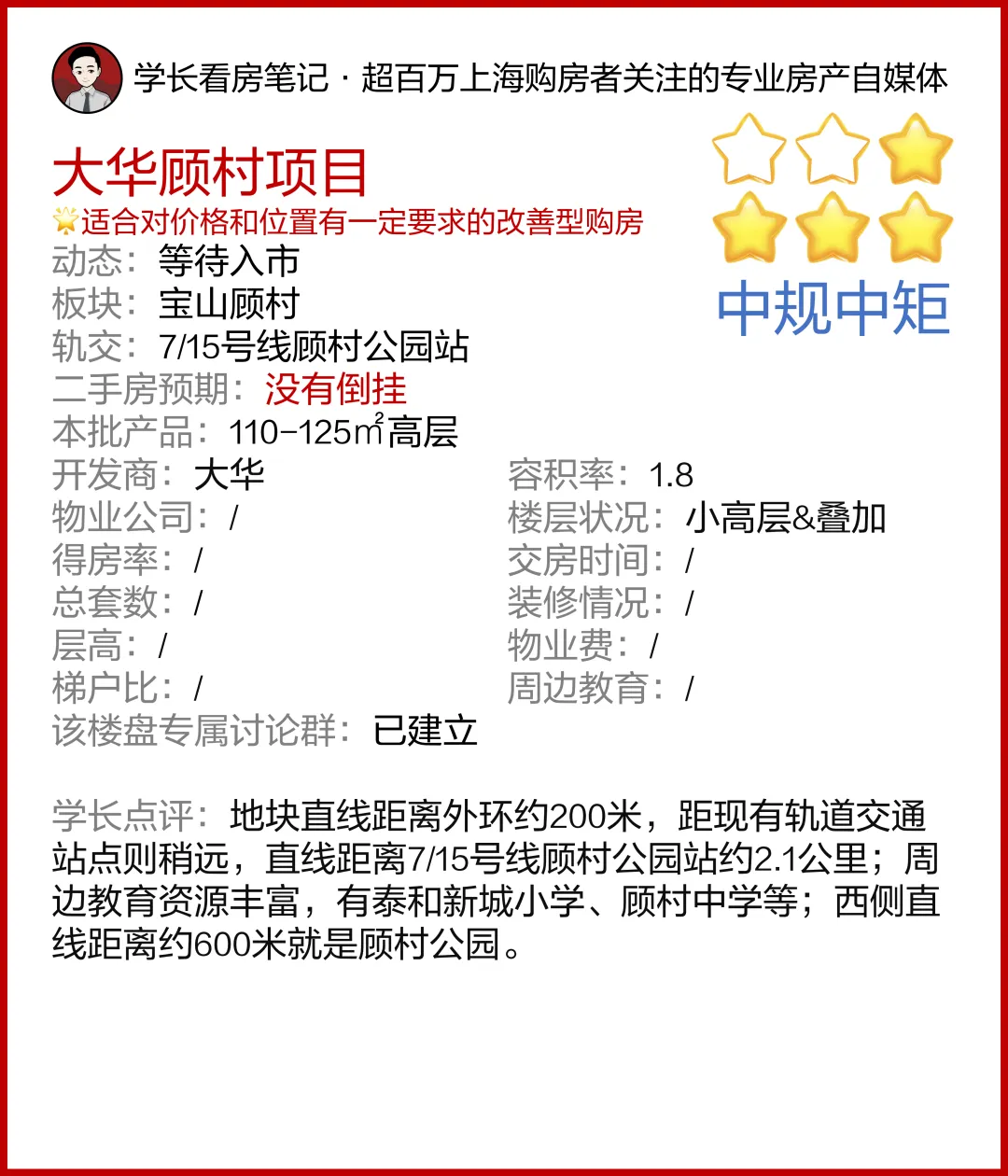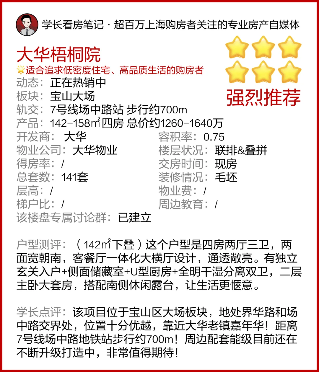 最新消息,中环旁典藏版高阶墅区上新!约0.75低容积+7号线约700米+实景准现房,「大华梧桐院」正在热销中!最新消息:双轨交+央企匠造公园品质住宅「保利海上瑧悦」在售中!建面约99-154㎡三房四房!最新消息:宝山双轨交高品质楼盘「佳运瑞璟湾」正在热销中!推出建面约98-165㎡三房四房,总价约585-1200万!最新消息:「大华顾村项目」效果图曝光!网传户型110-125㎡高层!最新消息:宝山顾村「招商时代乐章」正在热销中!推出建面约89-126㎡三房!最新消息,宝山新顾村「招商中旅观境」正在热销中!推出建面约89-144㎡三房四房,总价420万起!最新消息:宝山顾村「中建山水雅境」正在热销中!建面约99-143㎡三房四房,约4.84万/㎡!最新消息,北上海全新盘「金融街·美兰金悦府」正在热销中!推出建面约89-102㎡三房,总价310万起!欲了解详情可点击: