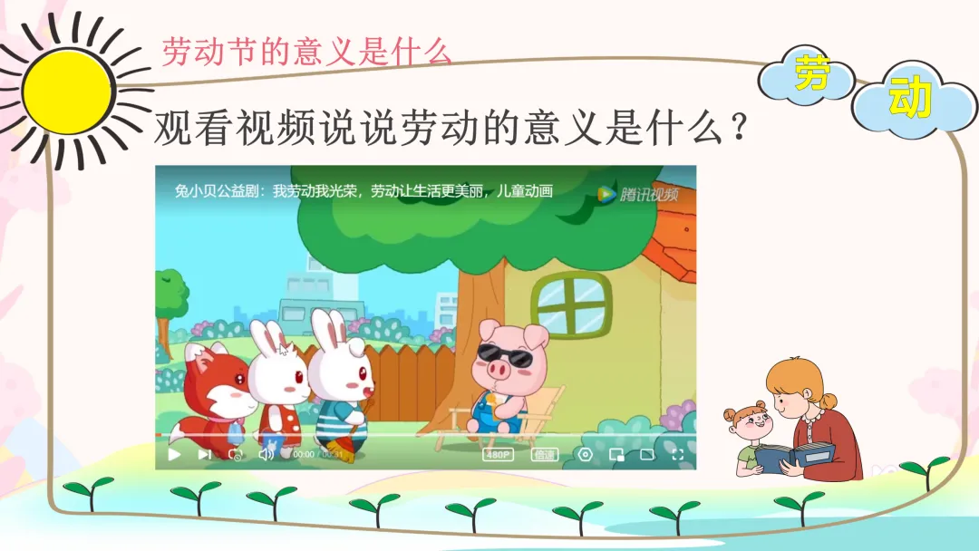 2.讲解劳动的意义:劳动是创造美好世界的源泉,能让我们的生活更整洁、更富足、更美好;劳动能锻炼我们的双手,让我们学会本领;劳动节的设立,就是为了纪念劳动者的付出,提醒我们永远铭记劳动的价值。