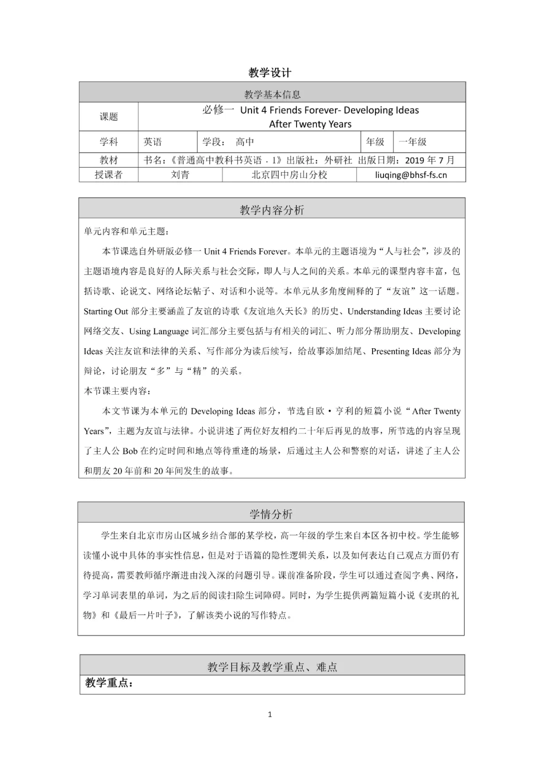 >说课课件:外研版必修第一册 Unit 4 Developing ideas 说课课件 (北京 刘青)