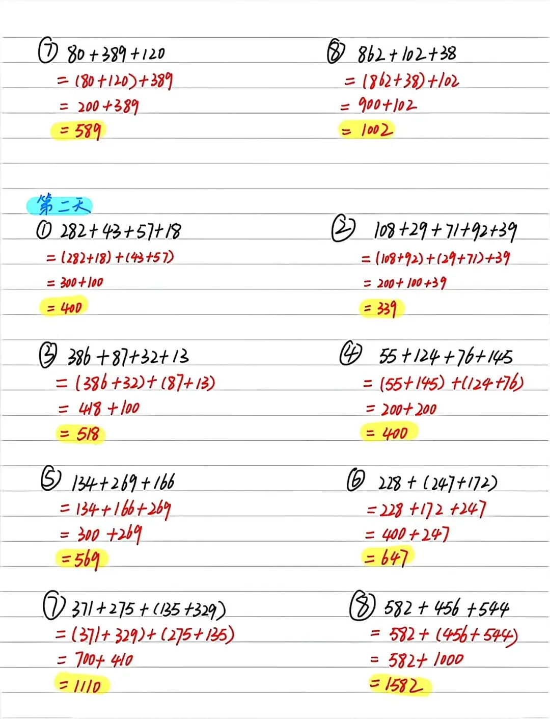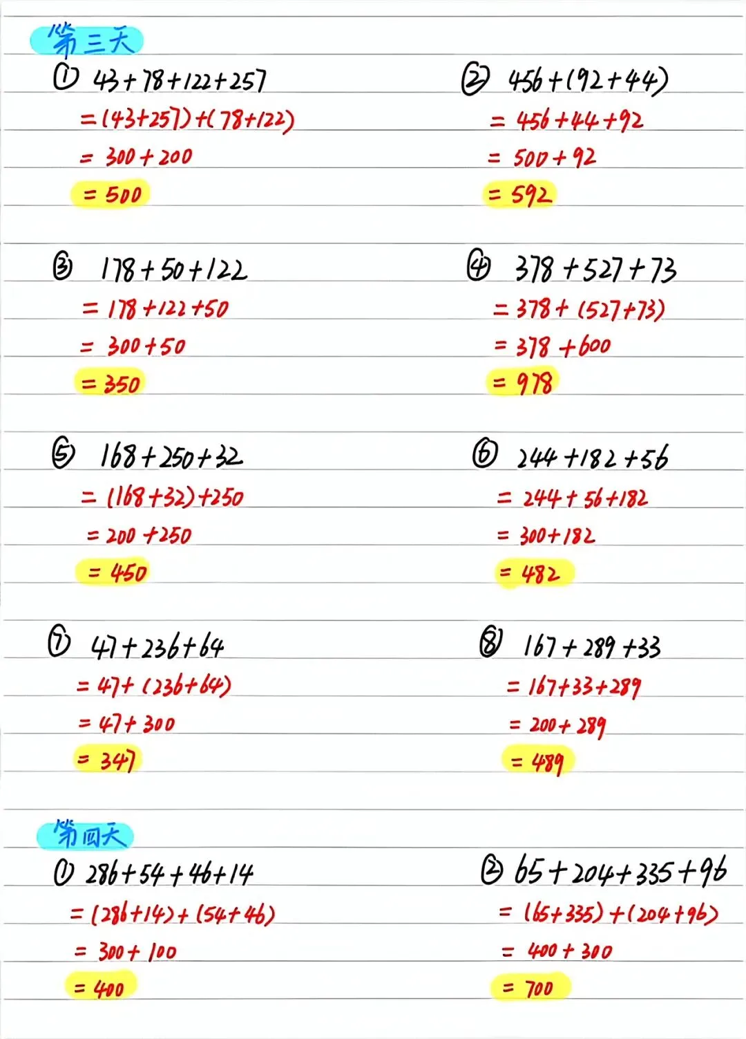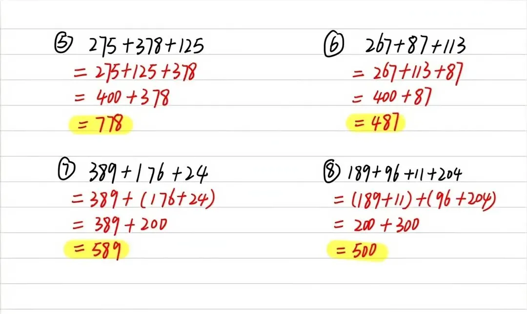 通常学生会按顺序计算,或者通过“凑整”来巧算。