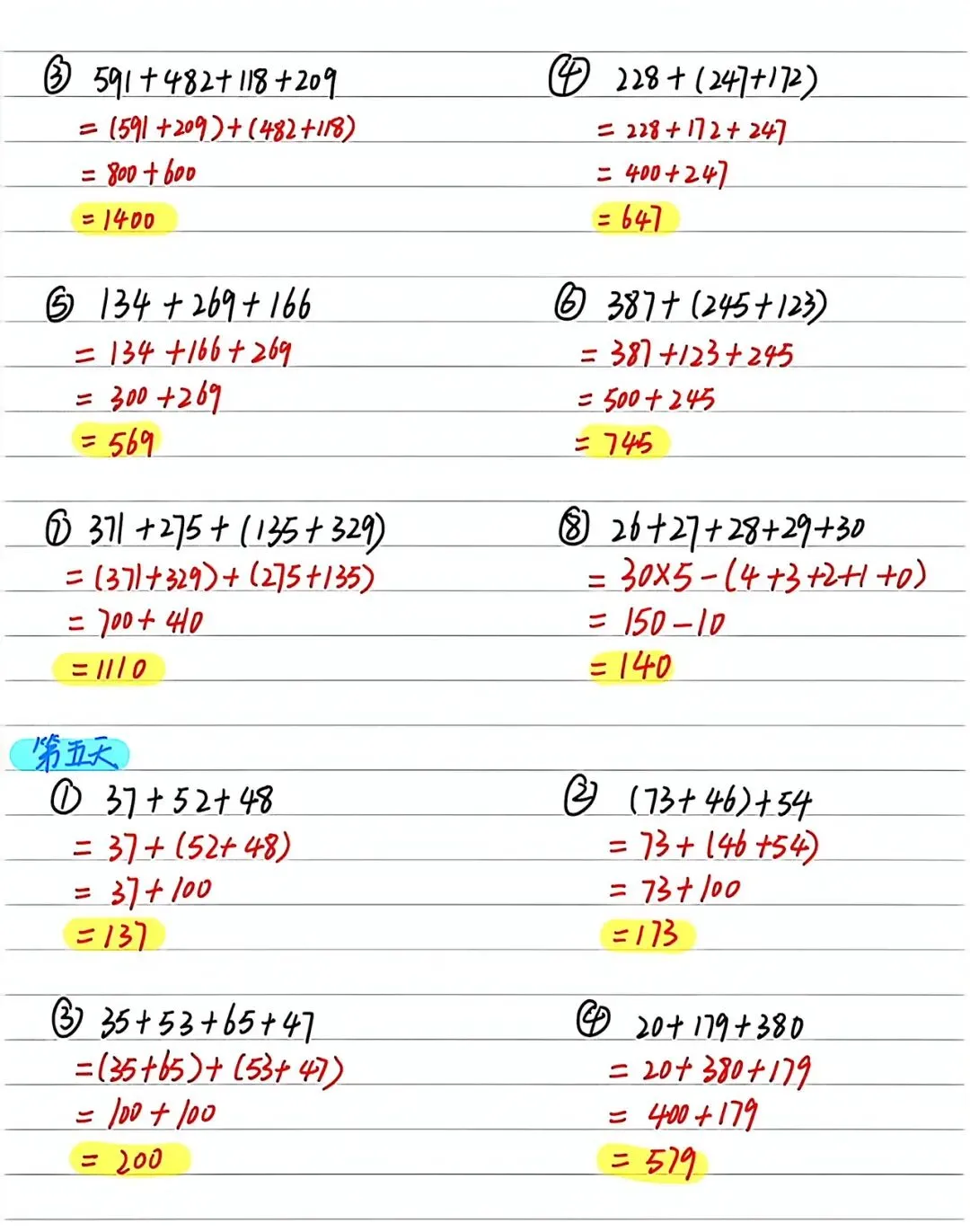 420+280=( )+420 50+34= 180+(25+75)=