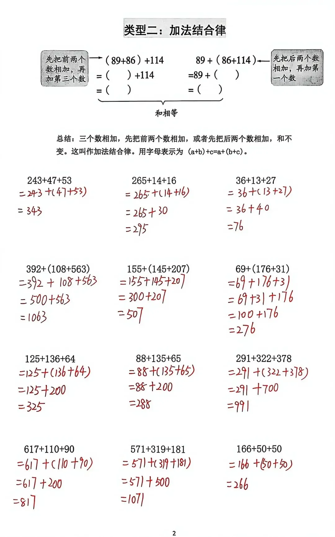 (2)下面这个等式应用了加法结合律了吗?