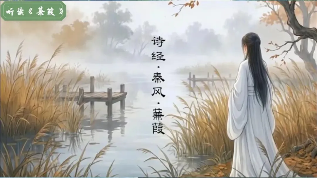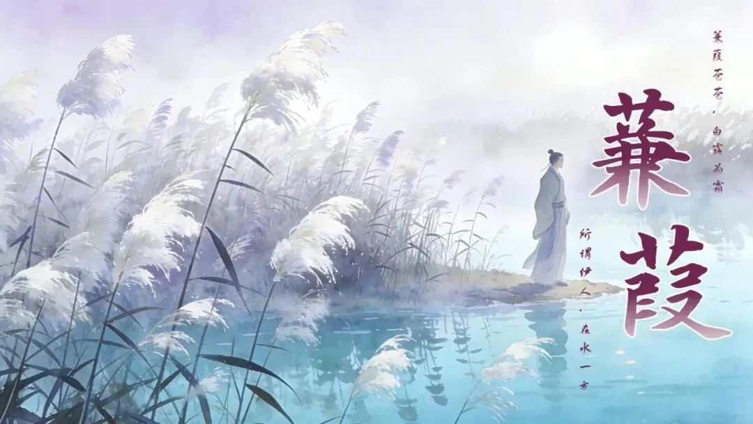 蒹葭苍苍,白露为霜。所谓伊人,在水一方。溯洄从之,道阻且长。溯游从之,宛在水中央。