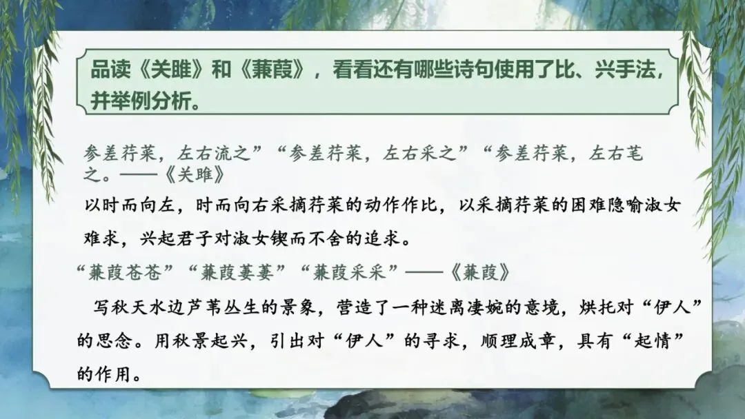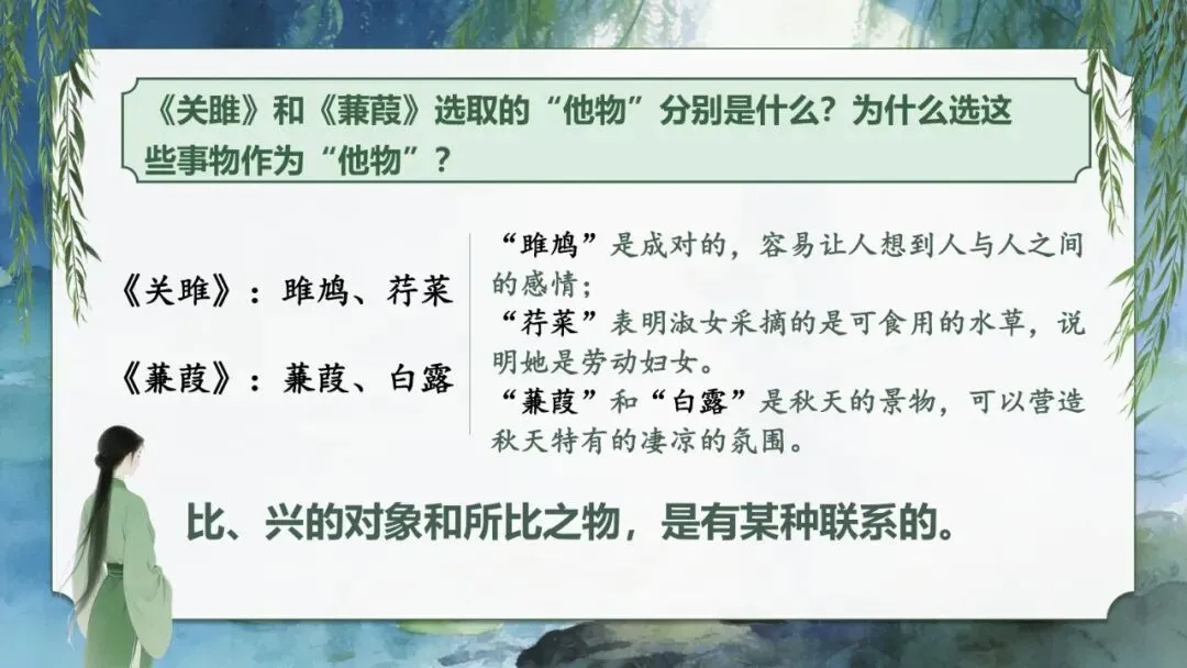 3.《关雎》和《蒹葭》选取的“他物”分别是什么?为什么选这些事物作为“他物”?