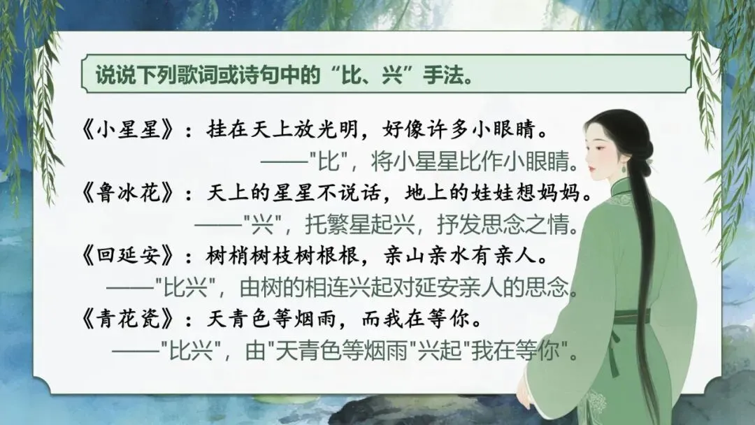 4.说说下列歌词或诗句中的“比、兴”手法。