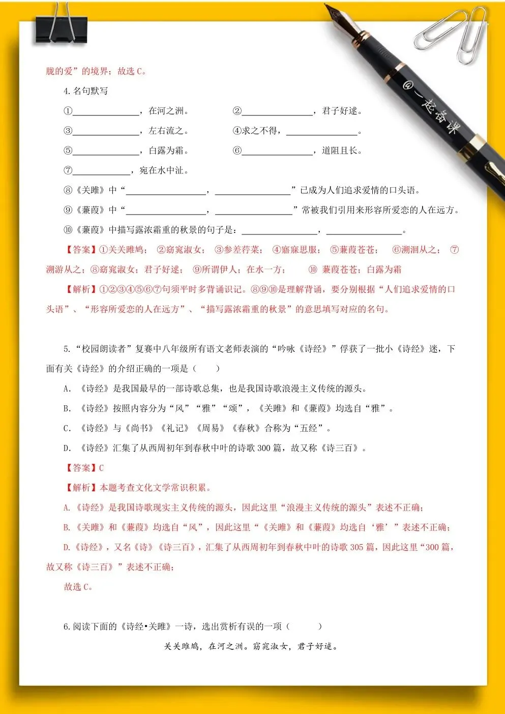 丨课文题目:《诗经》