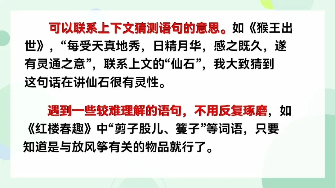 课外词语(拆合法、阅读经验、根据故事情节猜测……)