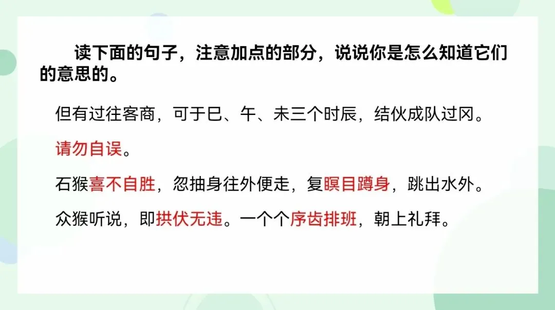 读下面的句子,注意加点的部分,说说你是怎么知道他们的意思的?