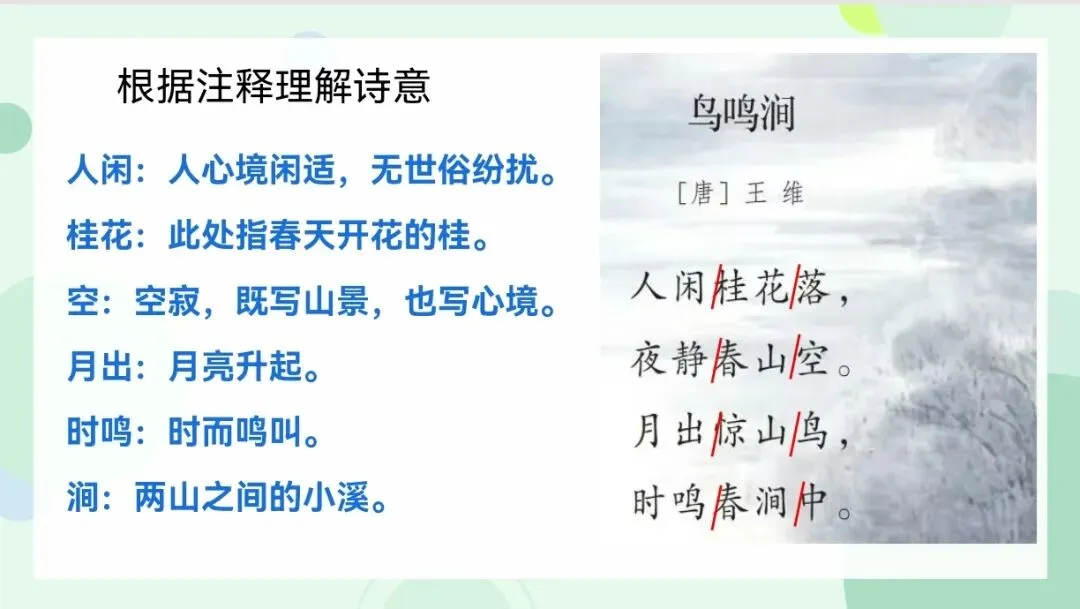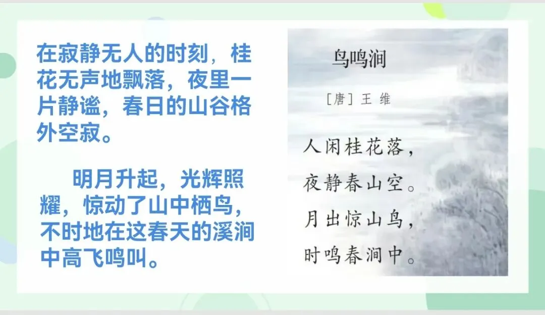 今天我们再来学习一首王维的诗,《鸟鸣涧》。