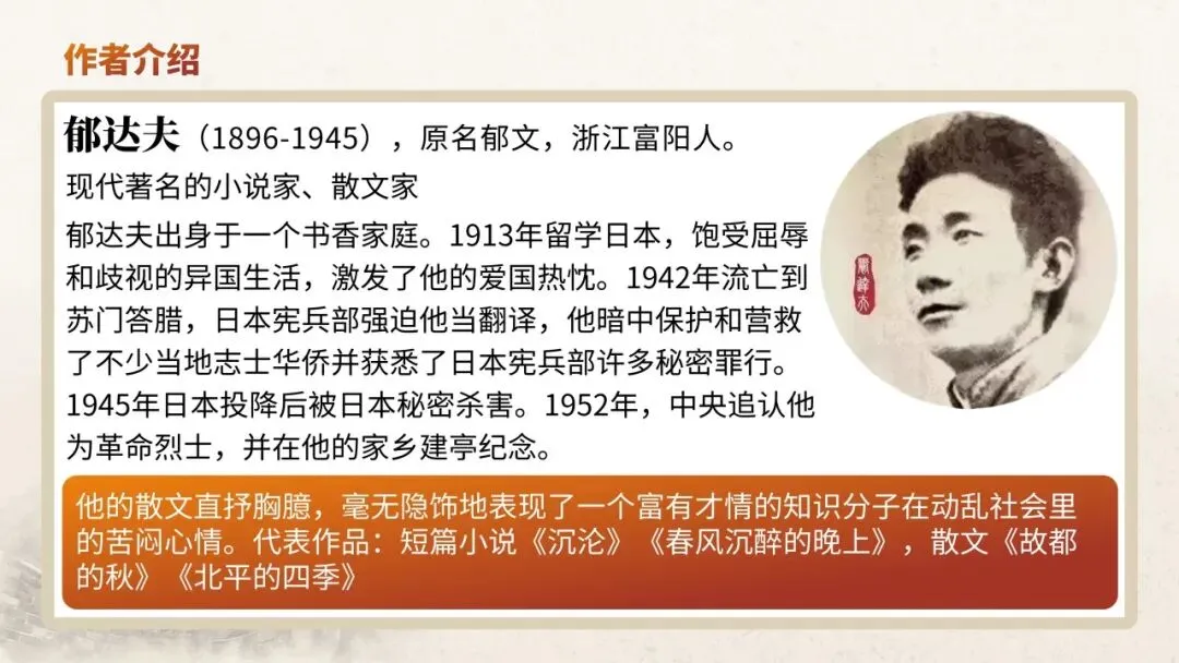 本期更新的课件为统编高教社版中职语文拓展模块上册第四单元《故都的秋》,课件共62页。