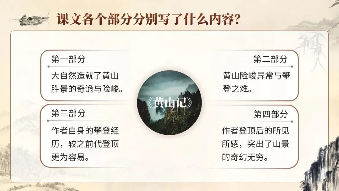 本期更新的课件为统编高教社版中职语文拓展模块上册第五单元《黄山记》,课件共29页。