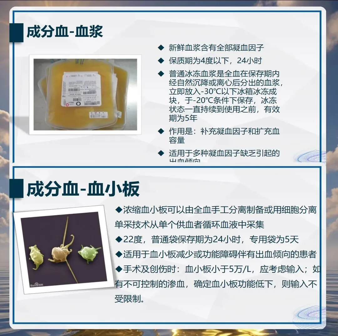 血液制品的储存和运输有严格要求。全血和红细胞悬液应保存在二至六摄氏度环境中,血浆和冷沉淀应保存在零下二十摄氏度以下,血小板保存在二十二至二十四摄氏度环境中持续振荡。不同血液制品的保存期限不同,红细胞悬液一般三十五天,血浆一年,血小板只有五天。护理人员要定期检查储存设备的温度记录,确保温度在规定范围内。从血库取血后要尽快使用,红细胞离开储存环境后三十分钟内开始输注,四小时内必须输完。血浆输注前要在三十七摄氏度水浴中融化,不能直接室温融化,以免破坏凝血因子。