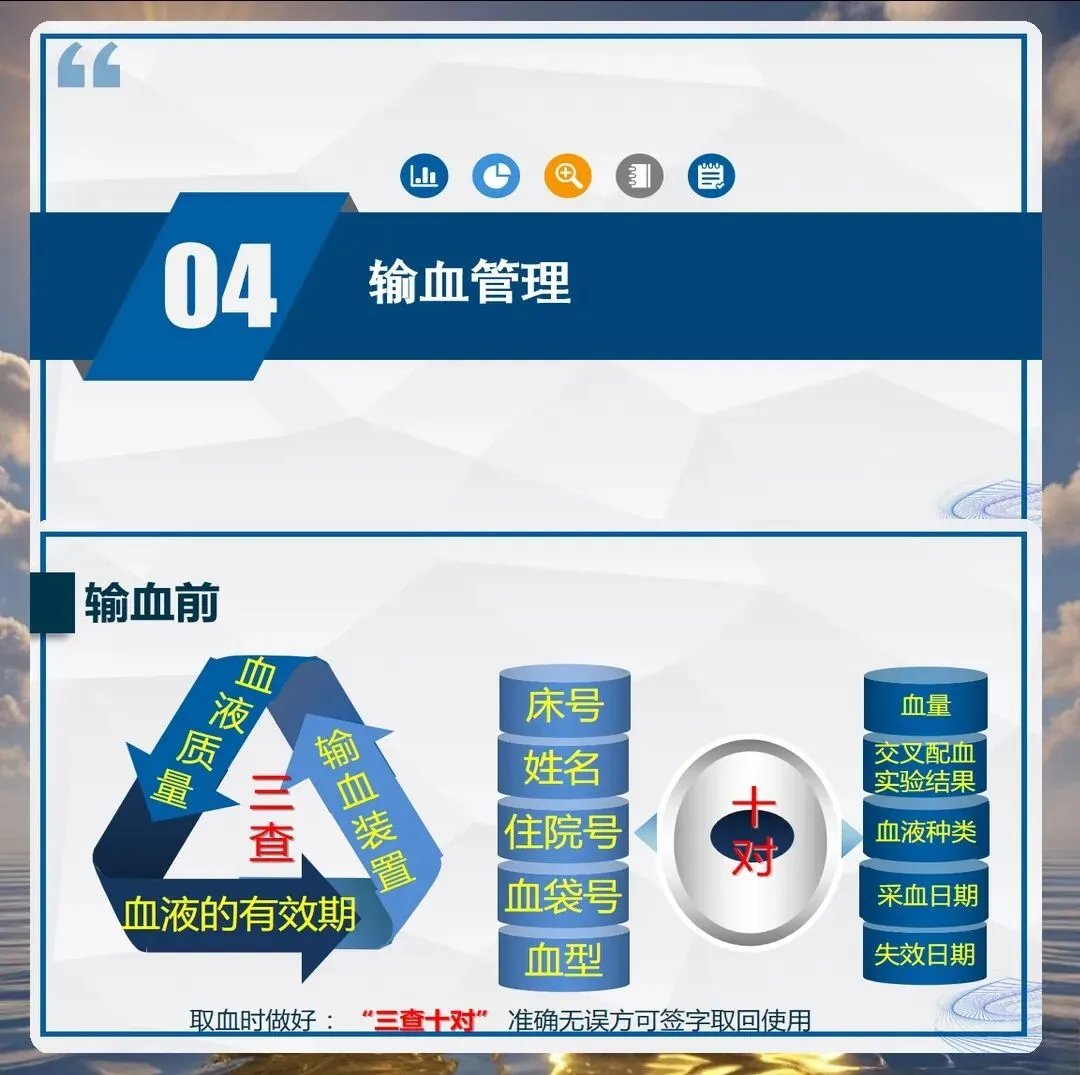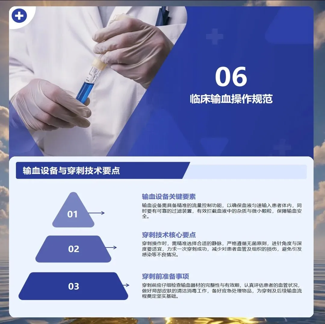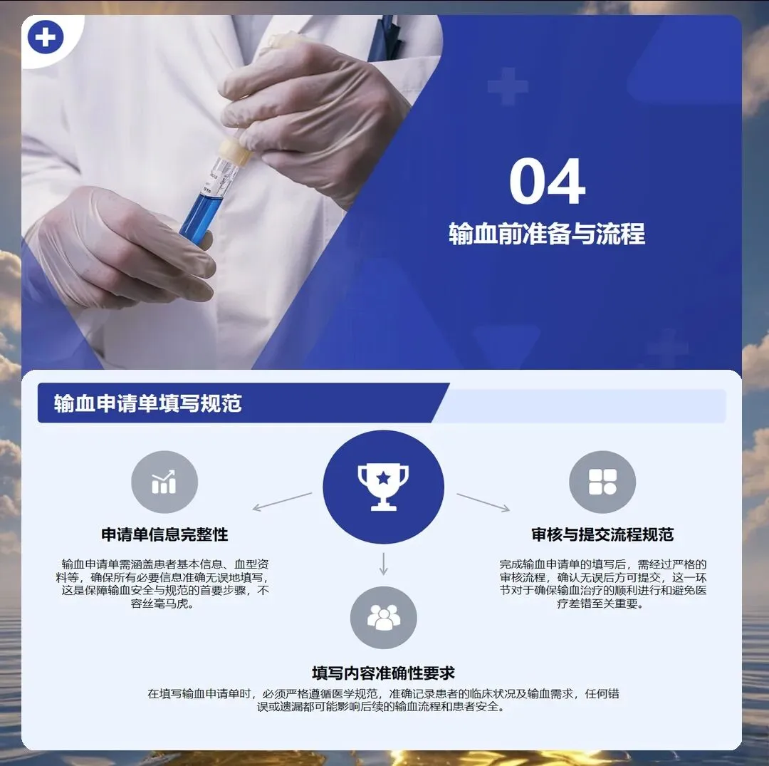 输血指征的把握是第一步。不是所有贫血患者都需要输血,也不是所有失血患者都必须立即输血。护理人员要了解输血适应症和禁忌症,血红蛋白低于每升七十克或红细胞压积低于百分之二十二通常需要考虑输血,但对于心功能不全、老年患者,可能需要更积极的输血策略。慢性贫血患者应尽量纠正病因,输血只是临时支持措施。输血前必须评估患者的心肺功能、凝血功能、血容量状态,全面评估后才能决定输血的必要性和时机。