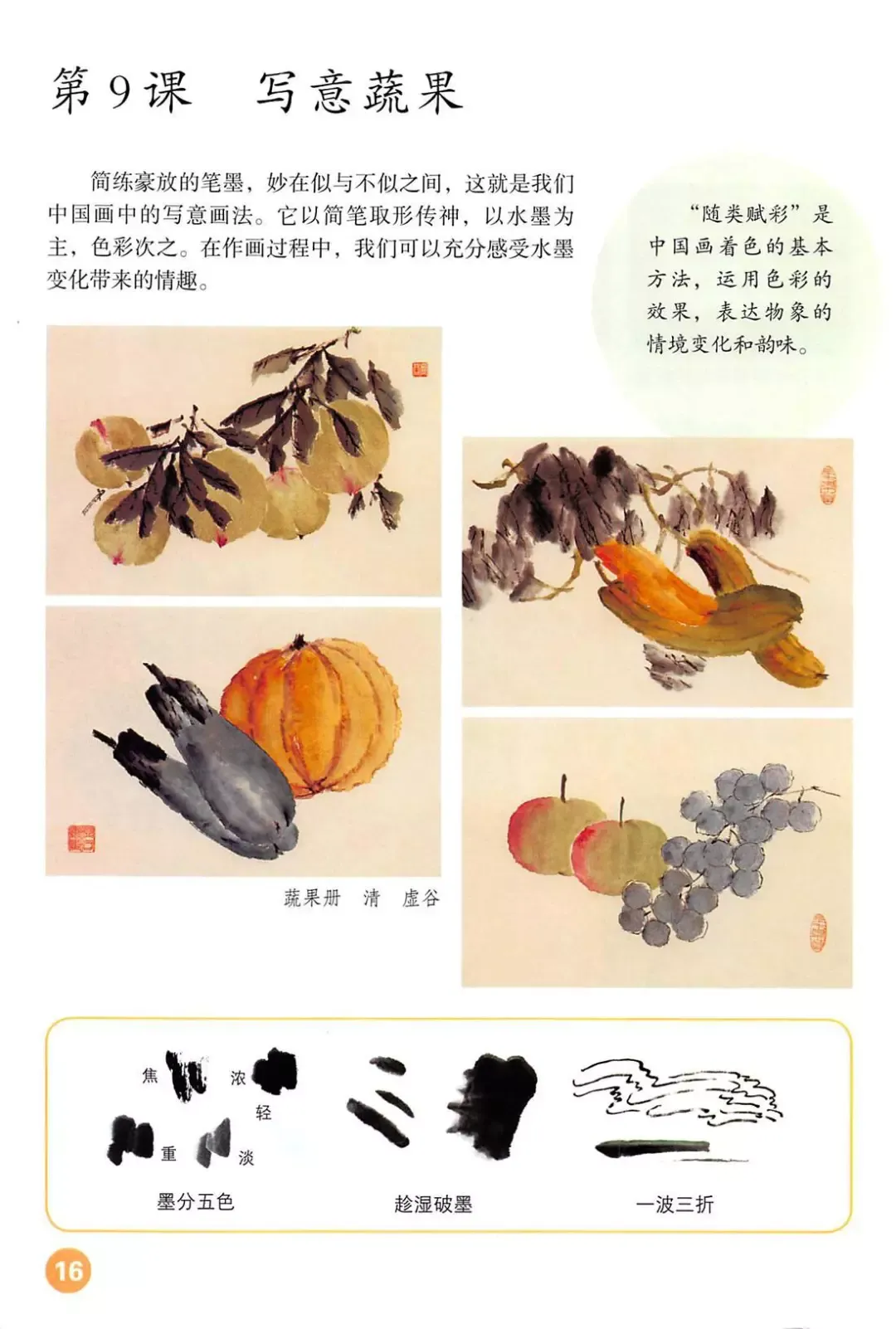 人教版五年级下册第9课《写意蔬果》:教案+说课稿+PPT