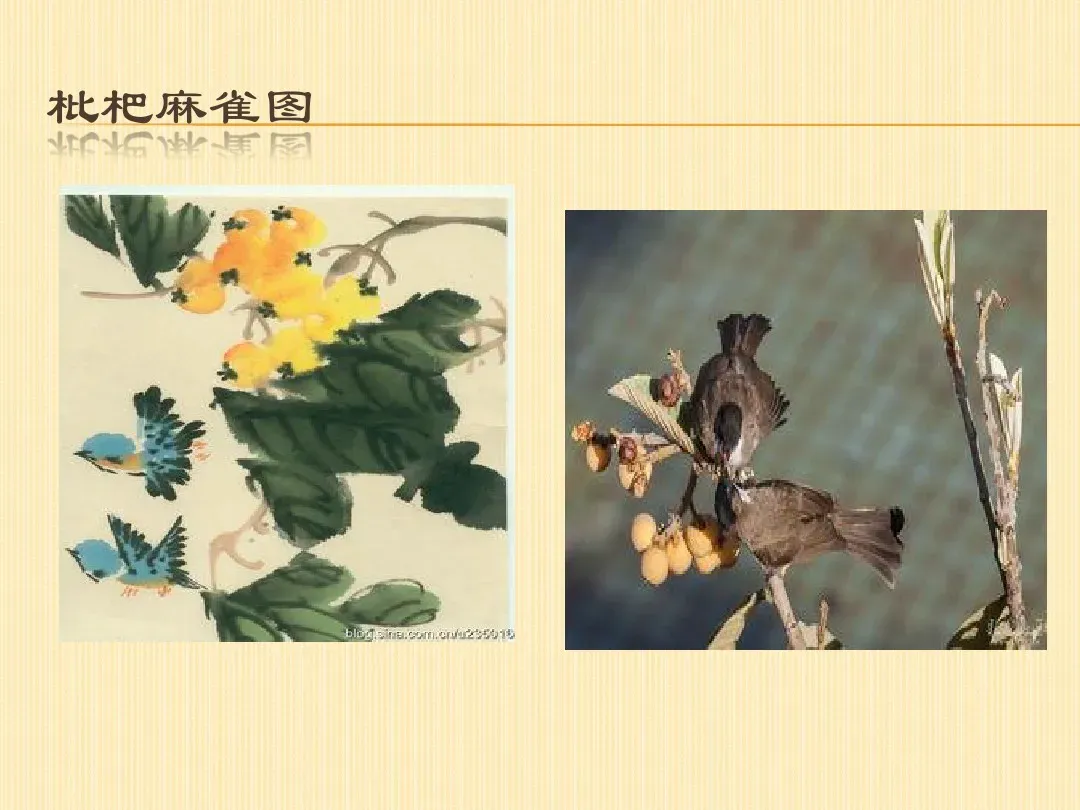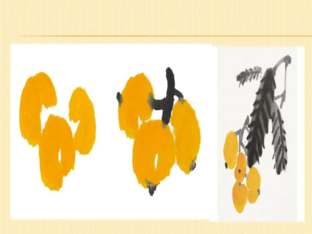 1.了解中国写意画的艺术特色,并学习中国写意画的笔法、墨法。及“随类赋彩”的基本着色方法。2.通过欣赏写意蔬果,学习写意蔬果的表现手法,感受中国画的墨、色变化韵味。国画教学最关键的就是训练学生对水、墨、笔的控制能力,是属于技能性比较突出的学科教学。五年级的学生对国画中的水墨工具已经具有了一定的接触,对水墨画的技能有过基础的训练。在平时的教学中,利用水墨画进行创作的课时比较少,学生不能熟练正确使用绘画工具,还有待进一步的加强训练。尤其是在笔墨水的调和比例上经常出现状况,比如水分太多就直接画在宣纸上,造成跑墨现象。或者使用颜色的时候,经常多种颜色调和在一起,最后颜色越调和越脏,最后就开始不耐烦地乱画了。针对这样的问题,我将采取演示—尝试—再演示的方法。相信,通过这节课教学的反复训练,学生能感受到水墨画带来的乐趣。通过学习写意蔬果,掌握写意蔬果的笔、墨、色的运用手法。同学们,通过在上节课的课程学习中,我们了解了中国画的基本知识和技法,你还记得哪些知识?谁来说说。“从视频中,我们重温了中国写意画的用笔、用墨及破墨技法。”“今天,我们就要学习运用这些表现方法来画‘写意蔬果’——枇杷果。” “现在让我们来看这幅《枇杷麻雀图》,它是现代画家来楚生的作品,来楚生是诗、书、画、印四绝的著名艺术家。也就是说他在诗词、书法、绘画和篆刻在这四个方面造诣都很深。一幅完整的中国画作品通常由这四部分组成。“让我们一起来欣赏,谁来说说,画面中的布局有什么特点?”“作品采用斜线式构图。画面左密右疏,密的部分通常做到密不透风,而疏的部分甚至采用留白的形式,让人有无尽的空间想象。“观察的真仔细,侧锋画叶片,浓墨勾叶脉,用水调藤黄加赭石没骨画枇杷。讲究浓淡深浅变化。这是一幅小品,作者最后只落了名章,没有落款。”“欣赏了大师作品,请大家看看,老师是怎样用没骨的形式和简练的笔法来画蔬果的。运用这种笔法,我们还可以通过改变色彩,画出樱桃、葡萄等圆的水果。【教师示范】刚刚老师画了几种不同的蔬果,现在请大家选择一种你最喜欢的,试着自己动手画一画。”“刚才大家都试着画了蔬果,谁来说说,你在画的过程中有什么感受?有遇到什么问题吗?”师小结:(1)调色时水分的控制要恰到好处,画面中要有水墨的韵味(2)用笔要依形变化,落笔成形,在行笔过程中,讲究提按、转折、徐疾等表现形态。 “现在老师就运用这些知识来画写意枇杷。请同学们帮老师想一想,我首先应该怎么做呢?”看,老师给大家带来了枇杷,请同学们仔细观察,它长什么样?有什么特点?“同学们观察的真细致,一下子就抓住了枇杷的造型,枇杷为橙黄色,近似圆形或椭圆形,顶部有蒂连着枝干,尾部有形似肚脐状的点,又叫鄂齿,叶子大而长,呈长椭圆形。认识了结构特征,我们就来画一画它。”“看了这么多作品,大家想不想自己动手试一试呢?这节课我们就来临摹一幅写意蔬果作品。”(教师巡回指导)2.生优秀作品上台展示,并请作者从画面布局、笔法及墨色的运用说明作品。同学们,你们知道为什么大师们喜欢画蔬果呢?那是因为它们都寄托了美好的寓意,如:白菜——清清白白做人,南瓜——多子多福,桃子——象征长寿;除了蔬果,我们还可以运用写意来画山水、人物和可爱的动物等题材,希望同学们在今后的学习中,能善于发现生活中的美,并把它们表现在我们的画面中。大家好,今天我说课的内容是人教版小学五年级美术下册第9课《写意蔬果》,根据新课程标准的说课要求,我将从教材分析、教学目标、学情分析、教学重难点、教法和学法、教具学具准备、教学过程、七个方面进行说课。 《写意蔬果》是人教版小学五年级美术下册第9课,属于造型·表现领域。 本课的要求是引导学生欣赏中国画中写意蔬果的表现特点,初步了解写意蔬果画几种常见的表现方法,激发学生对中国传统民族文化的热爱。通过欣赏中国画的各种皴法,指导学生在表现过程中运用相关技法及笔墨要求,表现简单的蔬果画,并根据自己的想象表现自己喜欢的各种蔬果。1.了解写意蔬果的一些基本知识,学习描绘果、叶、茎的初步技能。 2.体验写意蔬果的临摹方法、步骤,掌握用笔、用墨、用色的初步技能。3.培养热爱大自然美好事物的情景,在观察、表现事物时形成一丝不苟、胆大心细的态度和作风。 五年级学生属于小学高年级阶段,认知能力和动手能力相对较强,对的国画课有所体验。为本节课的学习奠定了良好的基础。本节课的设置符合学生的年龄特点、认知水平和学习规律。 依据美术学科的特点和学生的认知水平,我确定本课的教学 难点是:造型的准确、下笔的肯定,中国画点线的技法以及构图。 “教无定法、学无定法”,依据新课程标准 “以学生为主体”和“充分发挥学生个性” 的理念,我将运用直观教学法、示范教学法、启发教学法。使学习内容变得鲜活充实,易于掌握,使学习过程变得生动有趣,富有人文气息, 在学法指导上采用欣赏法、观察法、自主学习法、小组合作学习法。充分调动学生的“眼、手、脑、肢体”等多种感官参与学习,既提高了学生的学习兴趣,也培养了学生的动手能力,使他们充分享受到成功的乐趣。 为了使学生更好的体验写意蔬果中国画的意