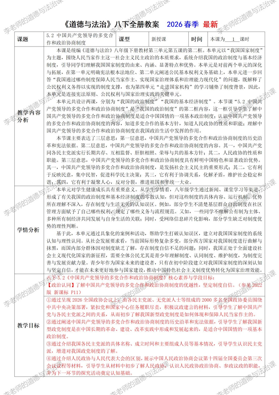 编者的话:李老师将连载2026春季《道德与法治》各年级的精品备课和学习资料。本资料为李老师原创,未经允许,禁止转载!